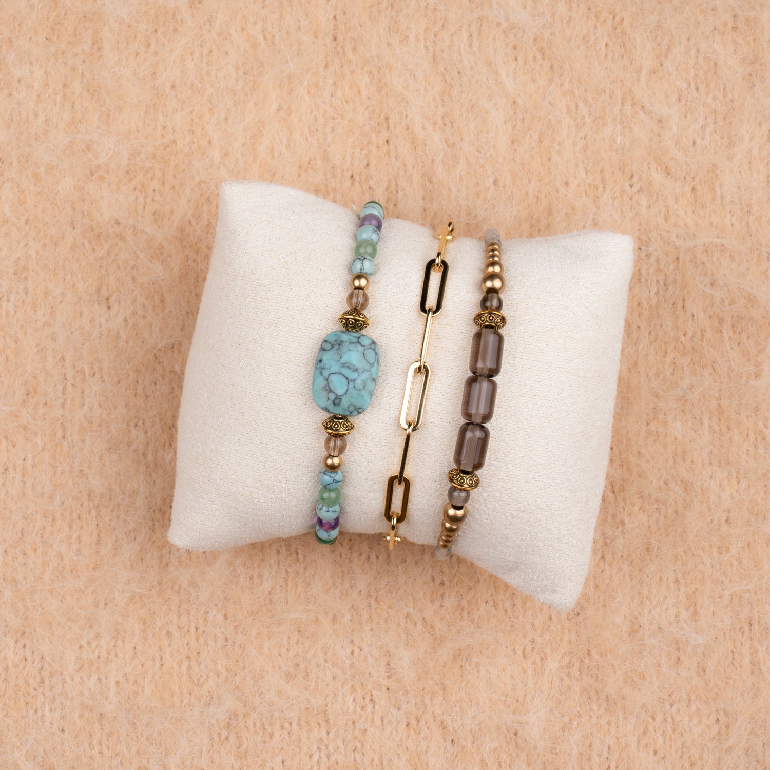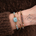 Elke unieke armband is met liefde met de hand samengesteld — een harmonieuze mix van prachtige stenen, gekozen om hun kleur, energie en karakter. De gouden kralen zijn gemaakt van roestvrij staal, zodat je armband mooi blijft tijdens het dragen. Van iedere armband is er maar één beschikbaar, zo draag je altijd een sieraad dat echt alleen van jou is.