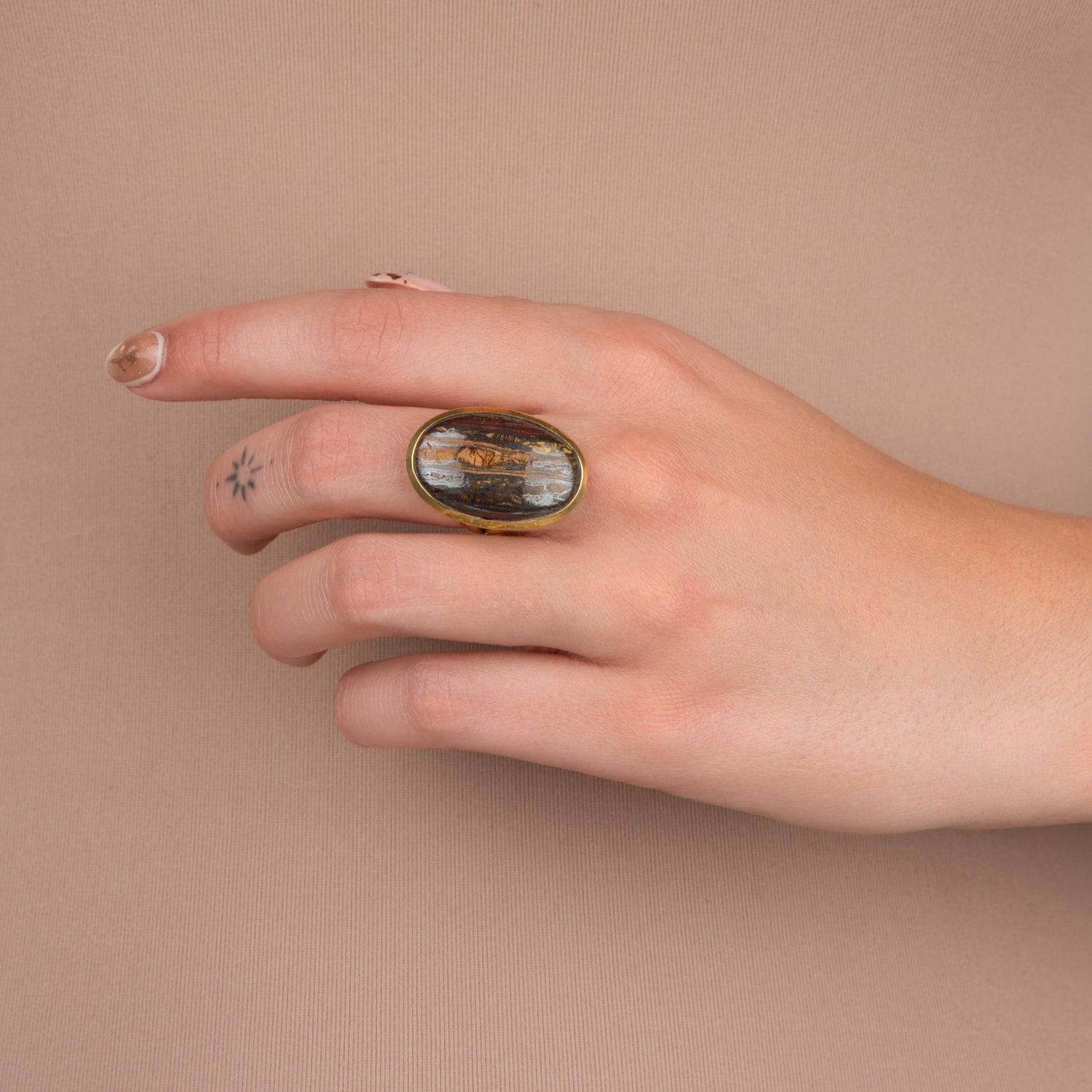Het heeft in ieder geval géén nadelige gevolgen voor de kleur van de ring, die blijft gewoon goud! Brass is namelijk goudkleurig, dus dit zal zo blijven. Wel kan het zijn dat (zeker in reactie op vocht) de kleur wat donkerder wordt na verloop van tijd, dit kun je gelukkig weer heel gemakkelijk oppoetsen met Brasso!