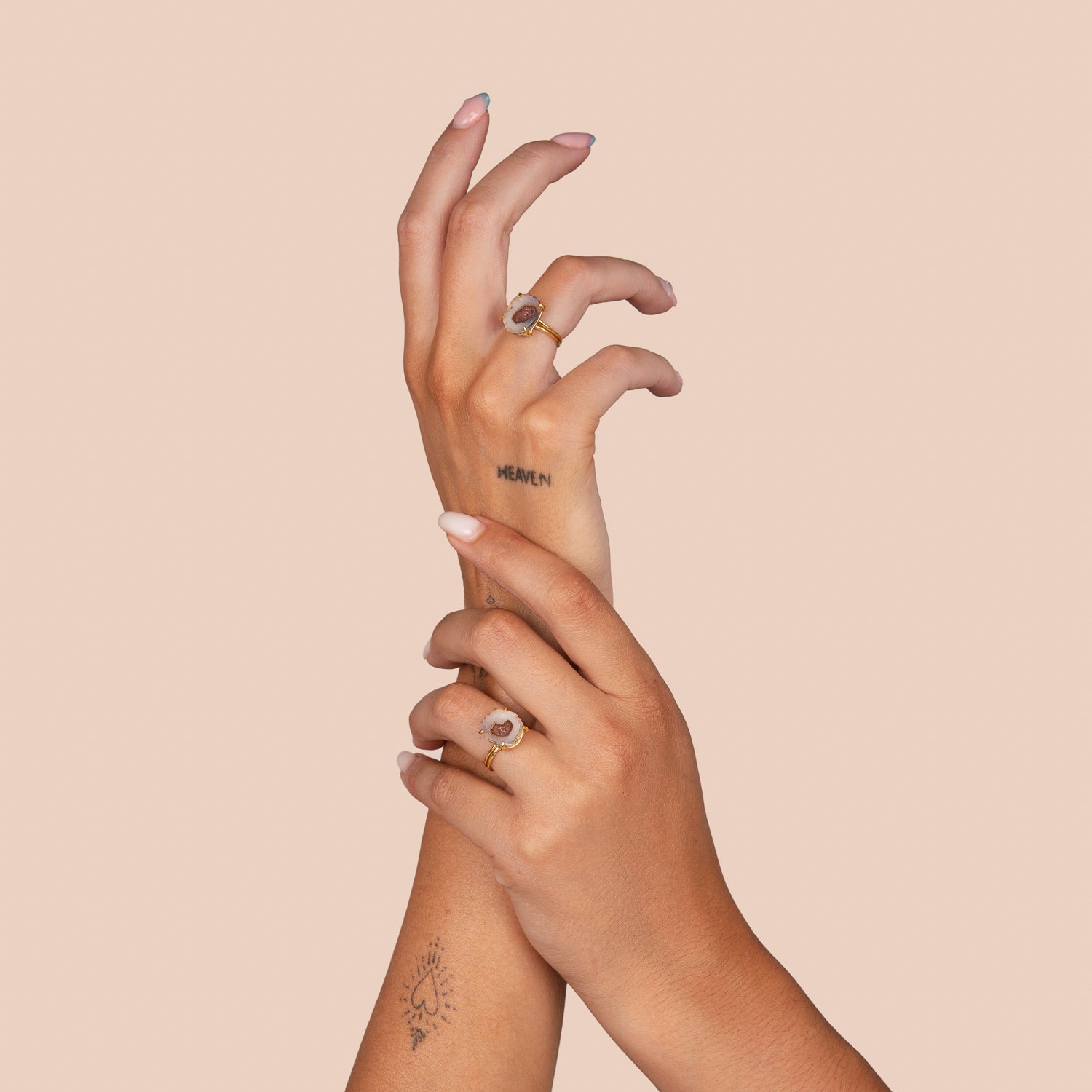 Iedere geode ring is one-of-a-kind door haar natuurlijke vorm en unieke patronen. Geen twee stenen zijn hetzelfde, waardoor je een sieraad draagt dat écht alleen van jou is. Omdat iedere steen uniek is, is er van elk sieraad maar één beschikbaar — uitverkocht is dus ook écht uitverkocht.