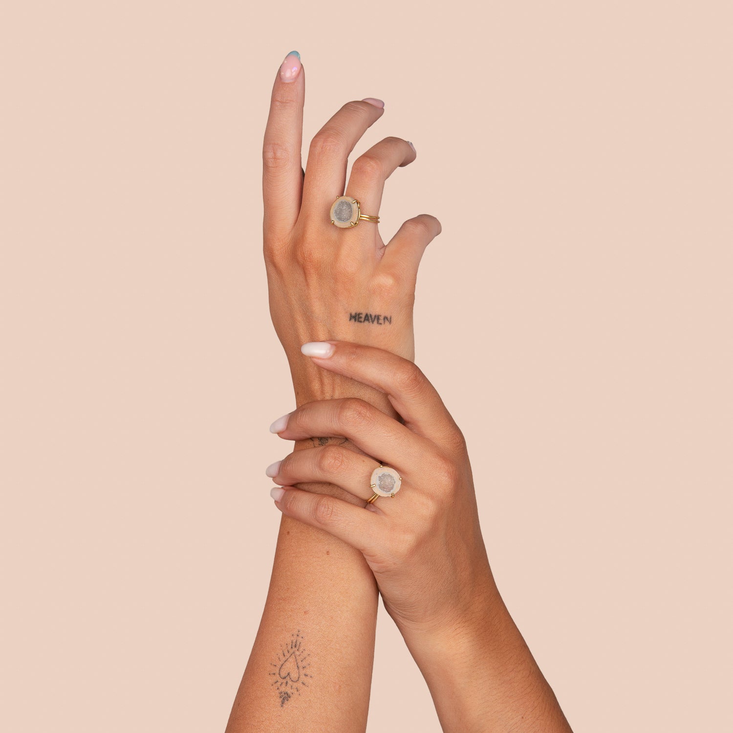 Onze Ethereal Souls collectie is een prachtige verzameling exclusieve geode ringen die de diepte van bijzondere relaties vastlegt. Deze ringen bevatten allebei de helft van één hele geode!