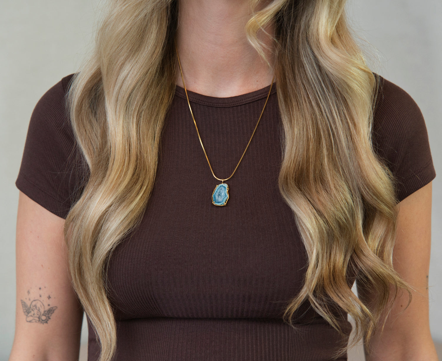 Iedere geode hanger is one-of-a-kind door haar natuurlijke vorm en unieke patronen. Geen twee stenen zijn hetzelfde, waardoor je een sieraad draagt dat écht alleen van jou is. Omdat iedere steen uniek is, is er van elk sieraad maar één beschikbaar — uitverkocht is dus ook écht uitverkocht.