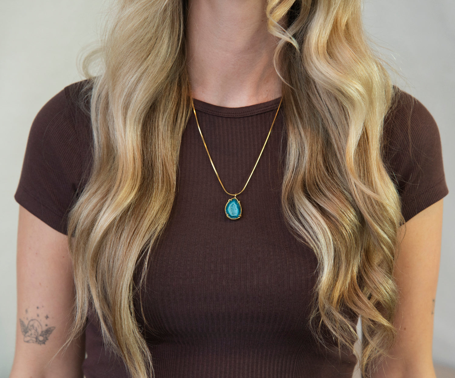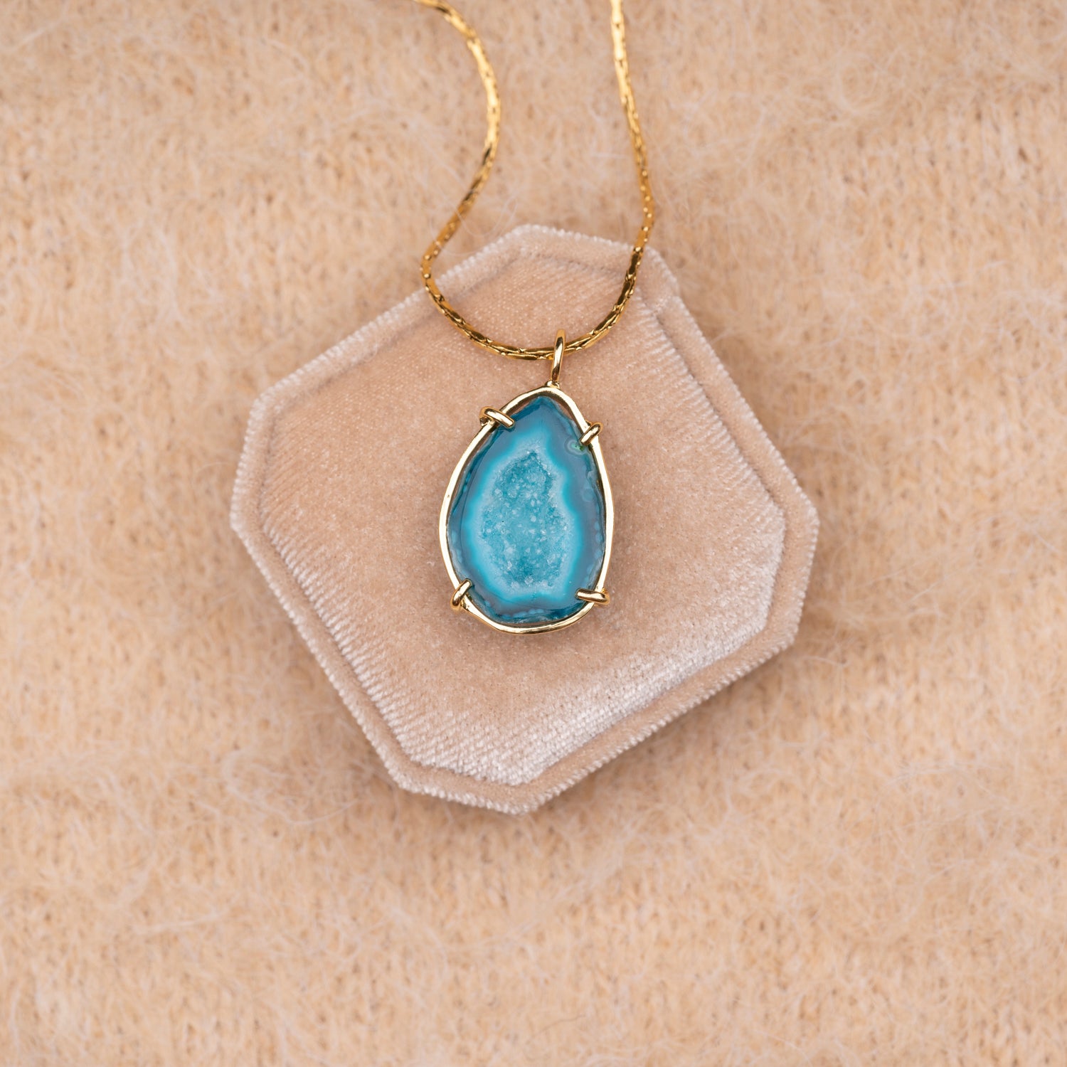 Iedere geode hanger is one-of-a-kind door haar natuurlijke vorm en unieke patronen. Geen twee stenen zijn hetzelfde, waardoor je een sieraad draagt dat écht alleen van jou is. Omdat iedere steen uniek is, is er van elk sieraad maar één beschikbaar — uitverkocht is dus ook écht uitverkocht.