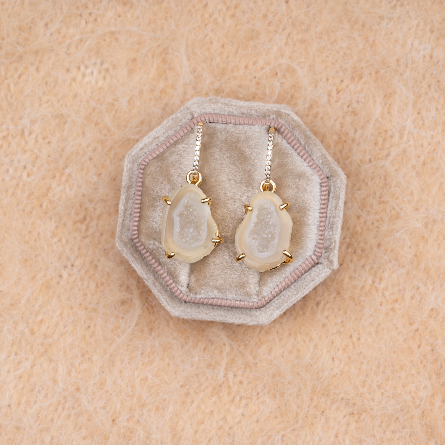Onze geode oorbellen zijn one-of-a-kind door hun natuurlijke vormen en unieke patronen. Geen twee paren zijn hetzelfde, waardoor je een sieraad draagt dat écht alleen van jou is. Omdat iedere steen uniek is, is er van elk sieraad maar één beschikbaar — uitverkocht is dus ook écht uitverkocht.