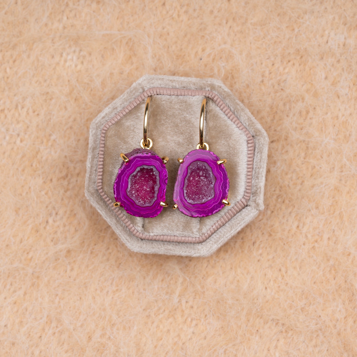 Onze geode oorbellen zijn one-of-a-kind door hun natuurlijke vormen en unieke patronen. Geen twee paren zijn hetzelfde, waardoor je een sieraad draagt dat écht alleen van jou is. Omdat iedere steen uniek is, is er van elk sieraad maar één beschikbaar — uitverkocht is dus ook écht uitverkocht.