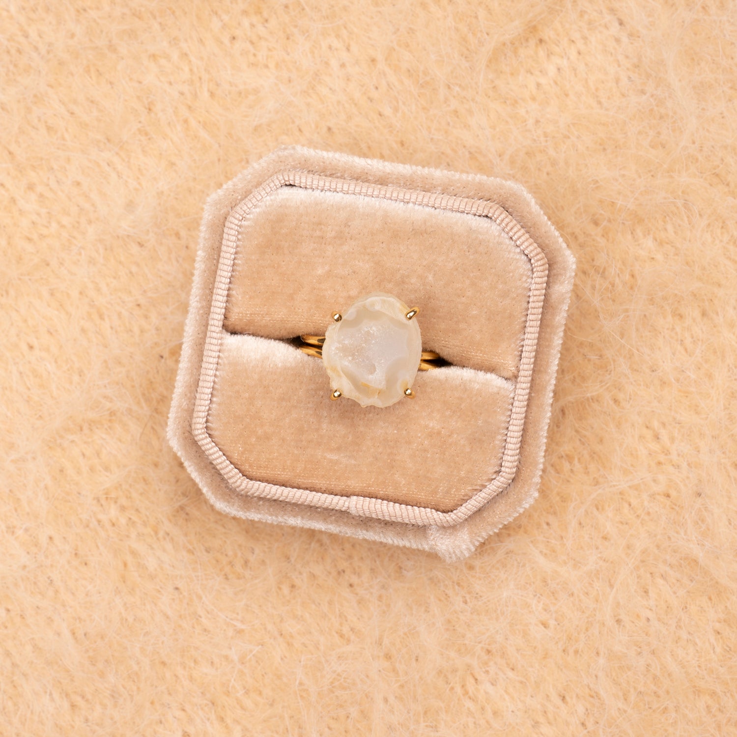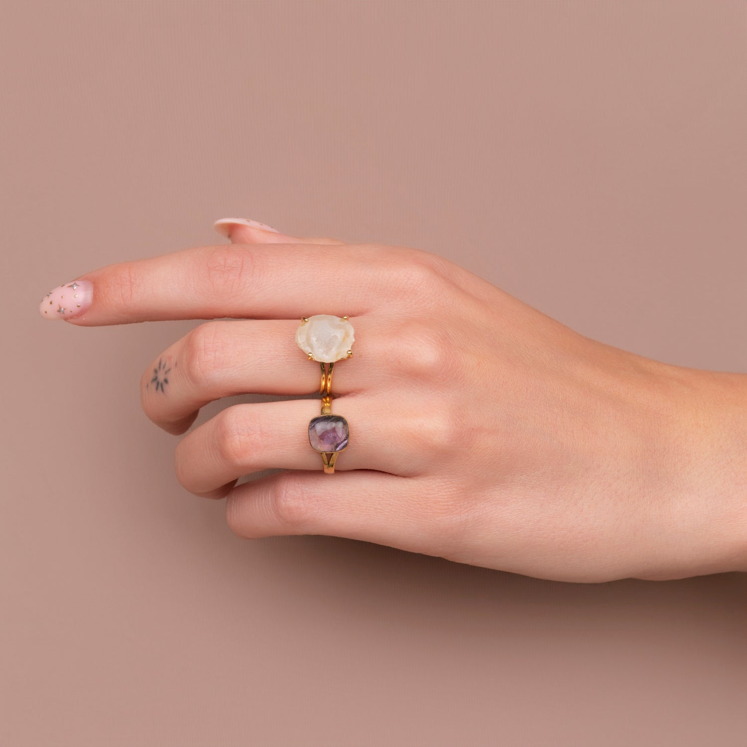 Iedere geode ring is one-of-a-kind door haar natuurlijke vorm en unieke patronen. Geen twee stenen zijn hetzelfde, waardoor je een sieraad draagt dat écht alleen van jou is. Omdat iedere steen uniek is, is er van elk sieraad maar één beschikbaar — uitverkocht is dus ook écht uitverkocht.