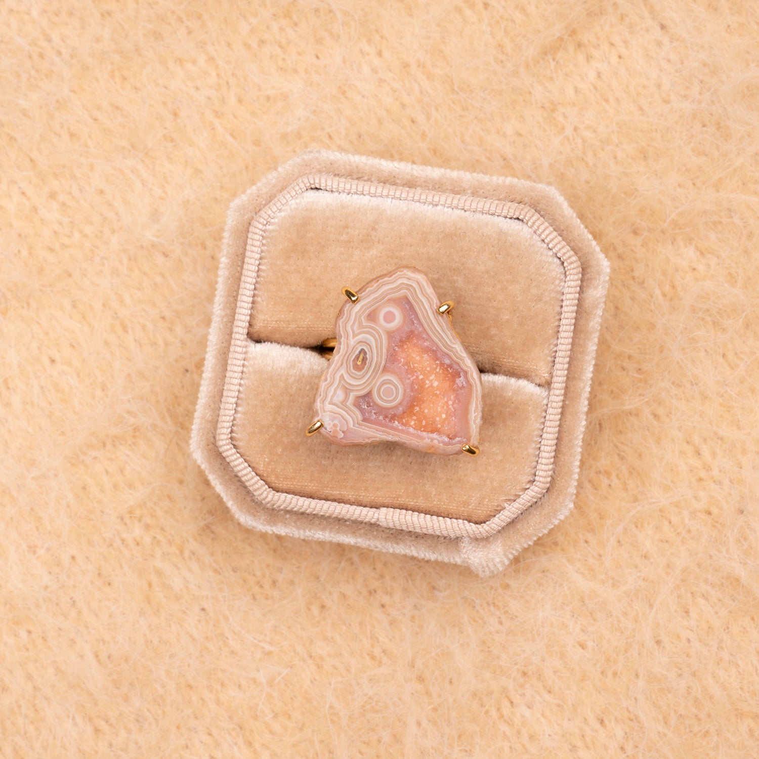 Iedere geode ring is one-of-a-kind door haar natuurlijke vorm en unieke patronen. Geen twee stenen zijn hetzelfde, waardoor je een sieraad draagt dat écht alleen van jou is. Omdat iedere steen uniek is, is er van elk sieraad maar één beschikbaar — uitverkocht is dus ook écht uitverkocht.