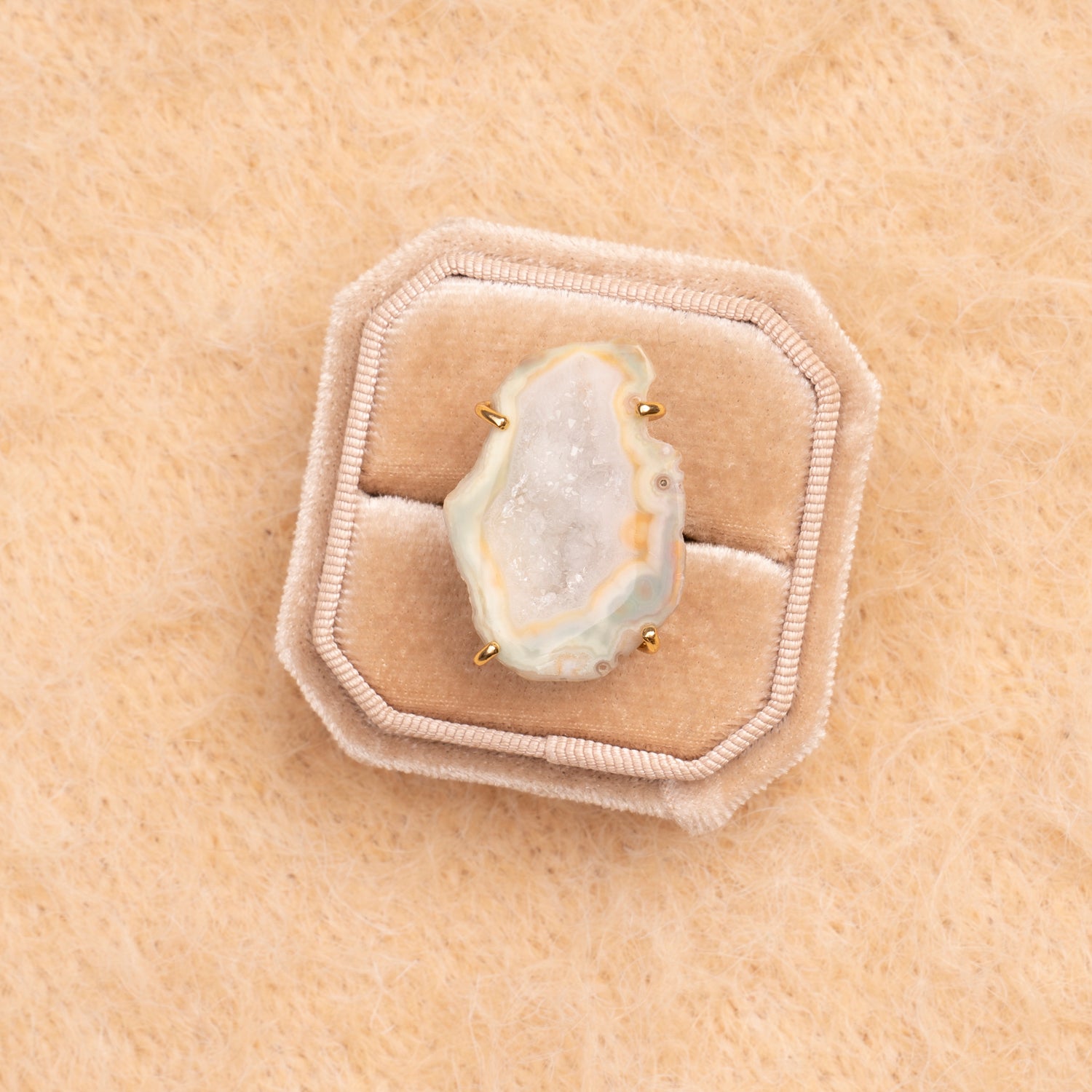 Iedere geode ring is one-of-a-kind door haar natuurlijke vorm en unieke patronen. Geen twee stenen zijn hetzelfde, waardoor je een sieraad draagt dat écht alleen van jou is. Omdat iedere steen uniek is, is er van elk sieraad maar één beschikbaar — uitverkocht is dus ook écht uitverkocht.