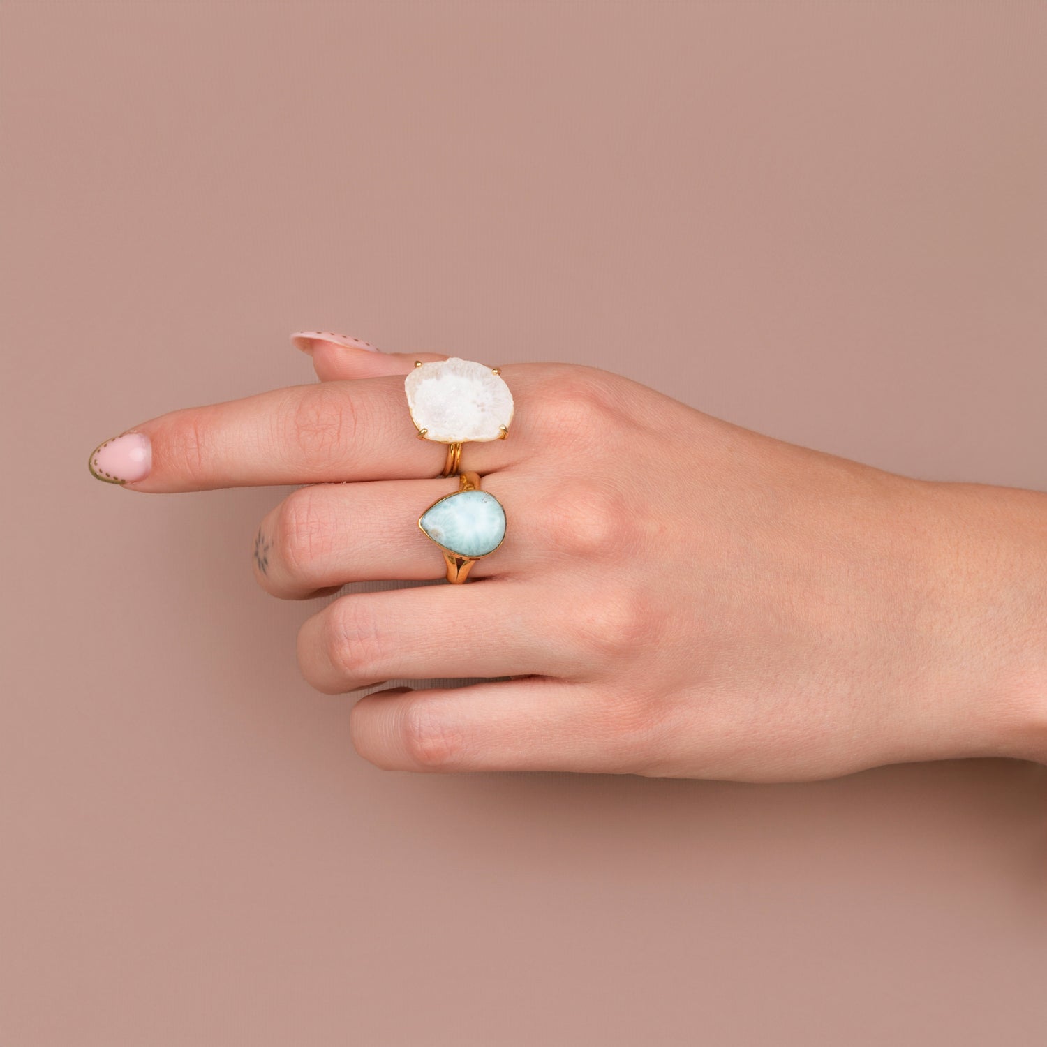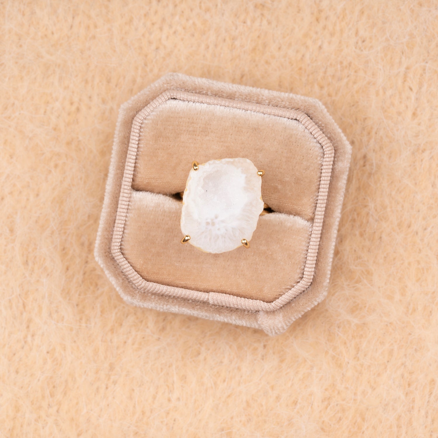Iedere geode ring is one-of-a-kind door haar natuurlijke vorm en unieke patronen. Geen twee stenen zijn hetzelfde, waardoor je een sieraad draagt dat écht alleen van jou is. Omdat iedere steen uniek is, is er van elk sieraad maar één beschikbaar — uitverkocht is dus ook écht uitverkocht.