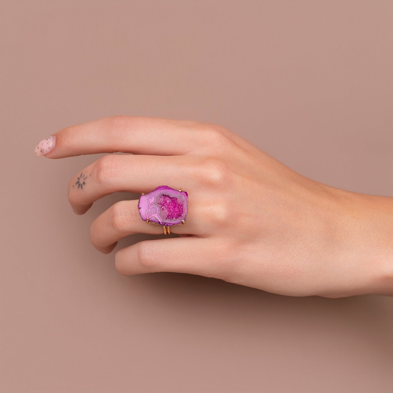 Iedere geode ring is one-of-a-kind door haar natuurlijke vorm en unieke patronen. Geen twee stenen zijn hetzelfde, waardoor je een sieraad draagt dat écht alleen van jou is. Omdat iedere steen uniek is, is er van elk sieraad maar één beschikbaar — uitverkocht is dus ook écht uitverkocht.