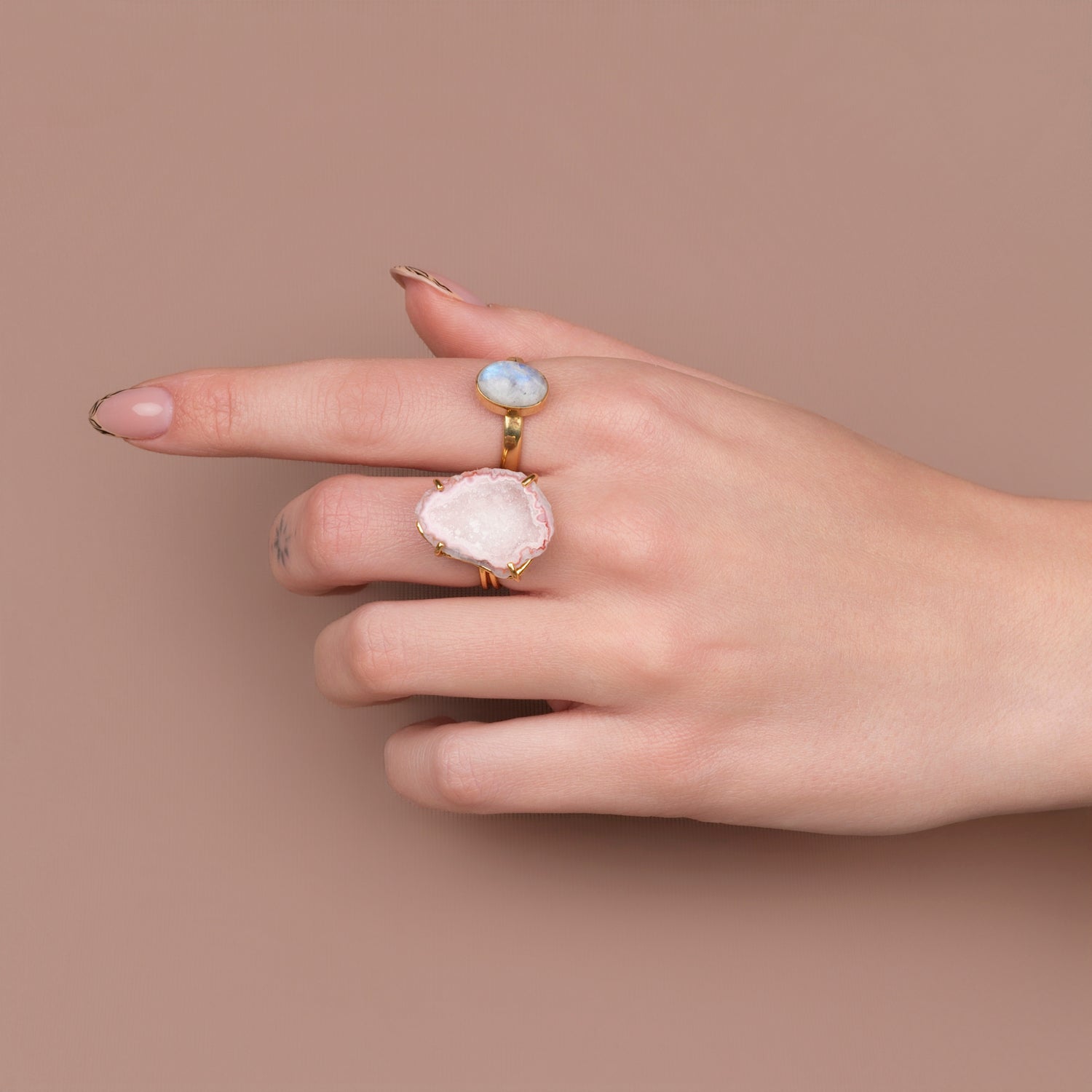 Iedere geode ring is one-of-a-kind door haar natuurlijke vorm en unieke patronen. Geen twee stenen zijn hetzelfde, waardoor je een sieraad draagt dat écht alleen van jou is. Omdat iedere steen uniek is, is er van elk sieraad maar één beschikbaar — uitverkocht is dus ook écht uitverkocht.