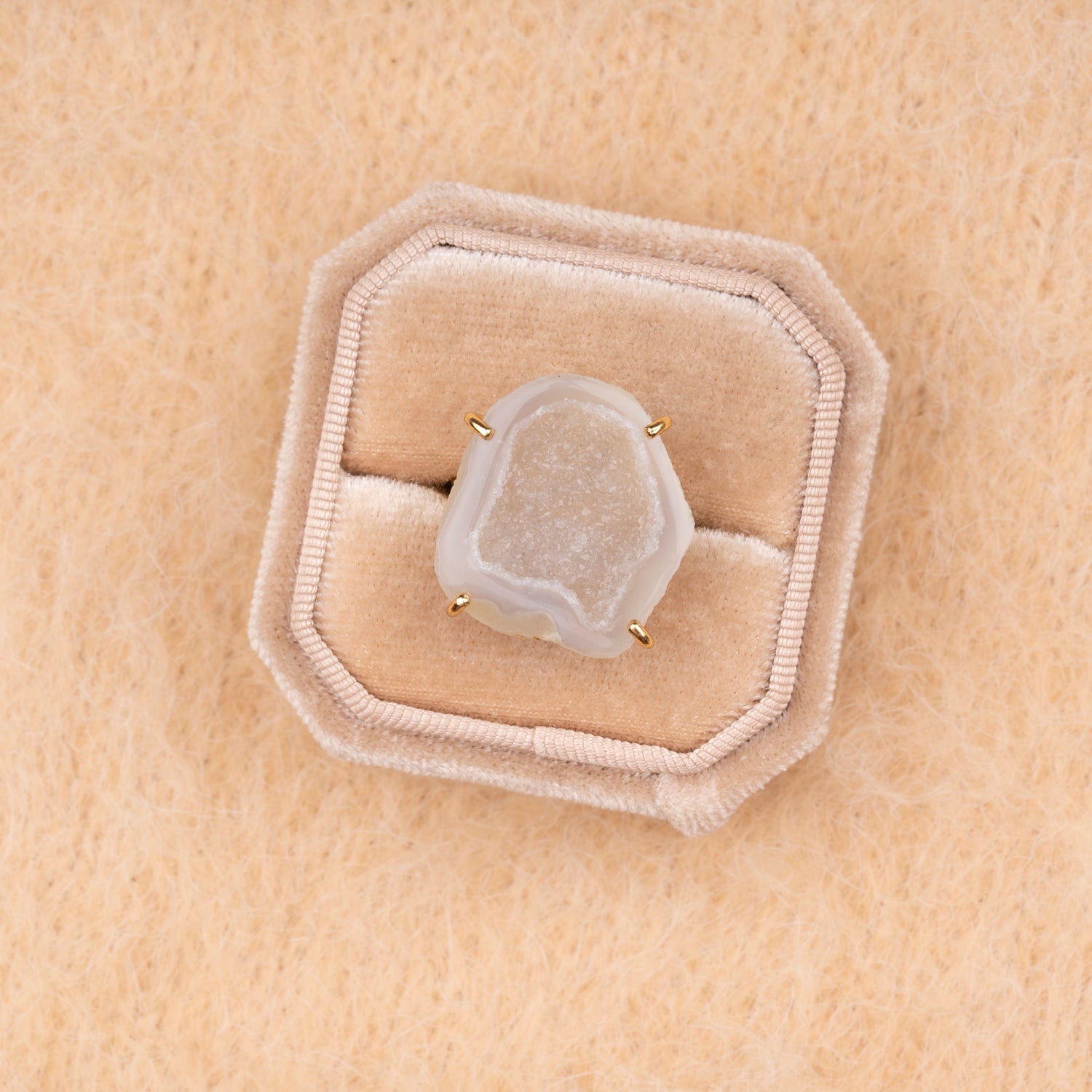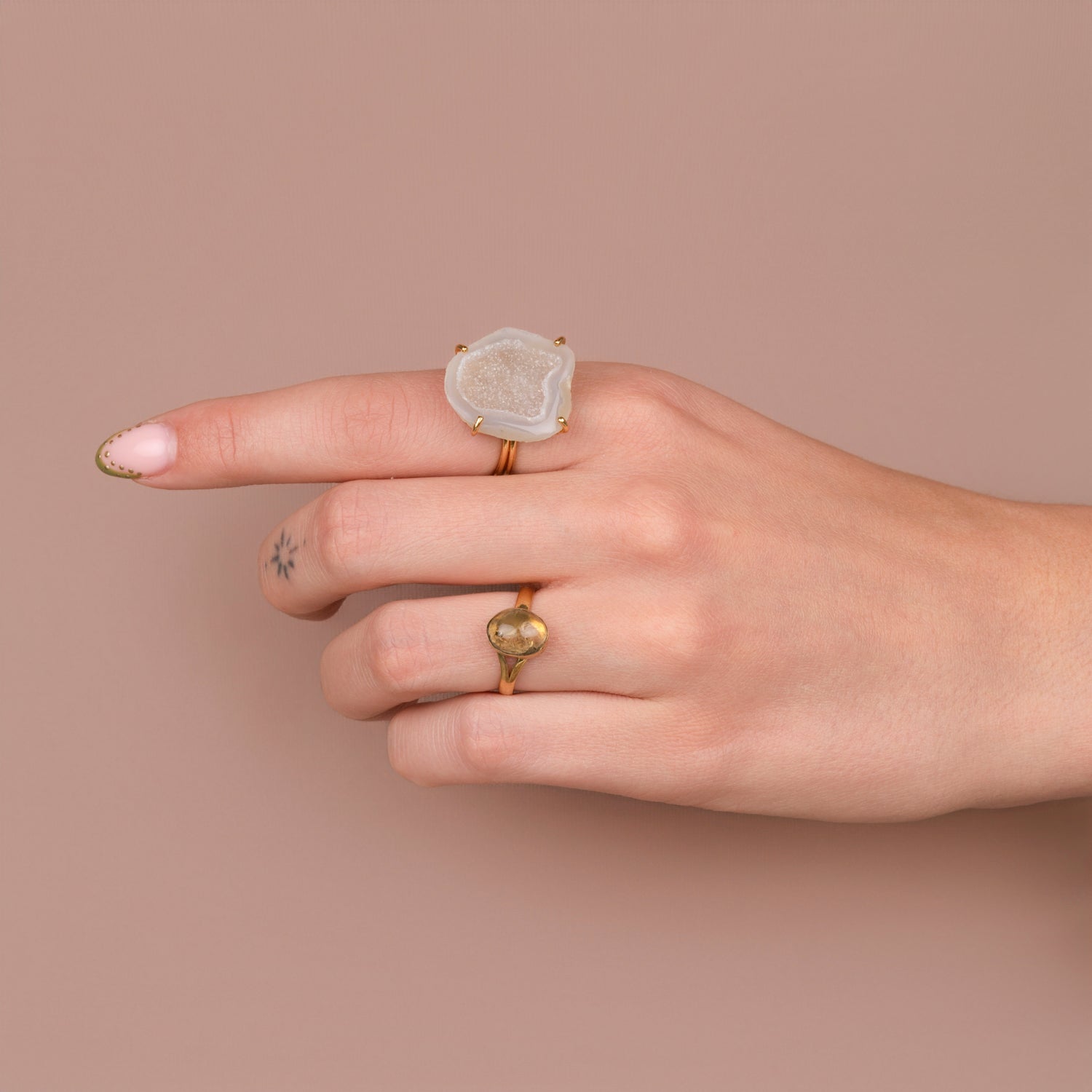 Iedere geode ring is one-of-a-kind door haar natuurlijke vorm en unieke patronen. Geen twee stenen zijn hetzelfde, waardoor je een sieraad draagt dat écht alleen van jou is. Omdat iedere steen uniek is, is er van elk sieraad maar één beschikbaar — uitverkocht is dus ook écht uitverkocht.