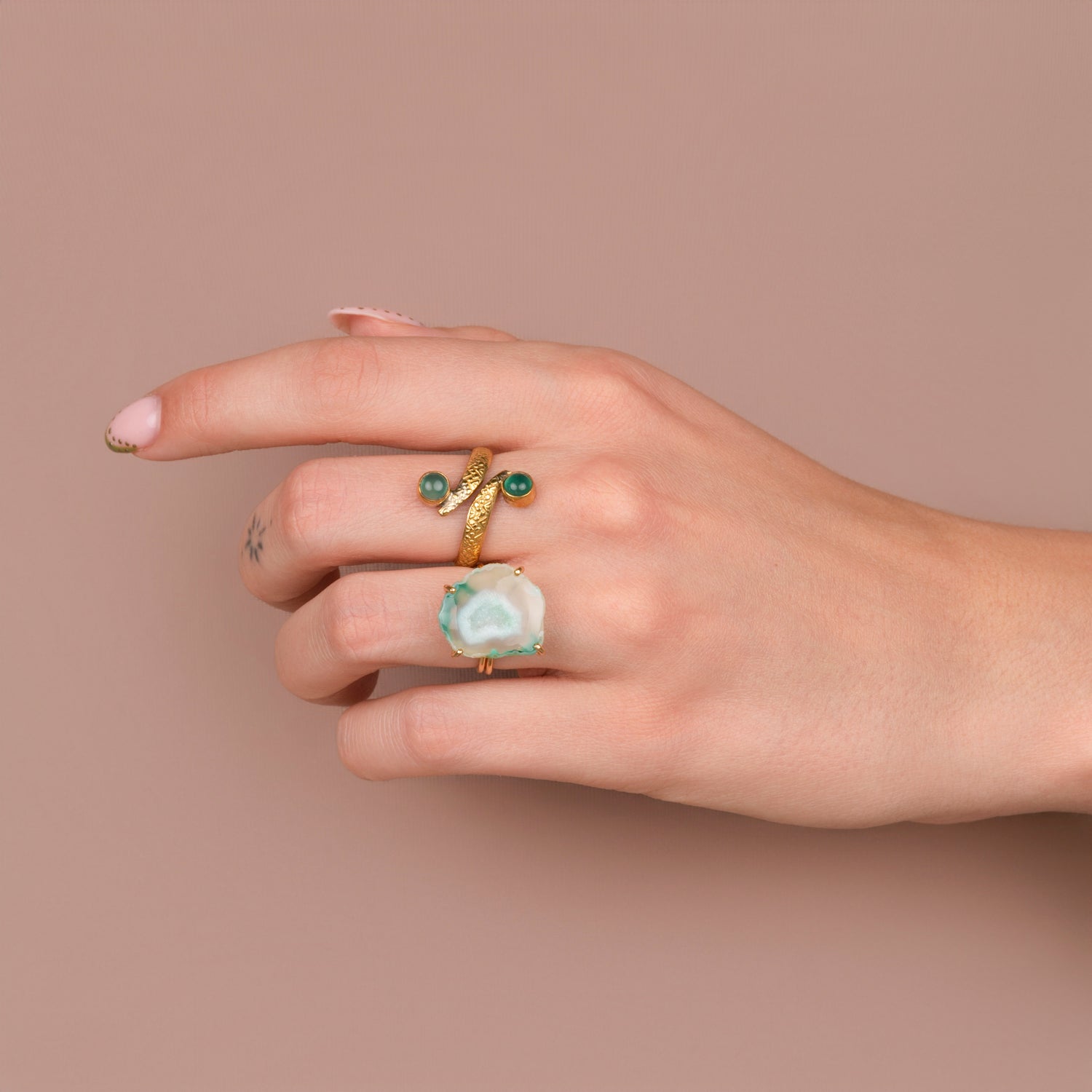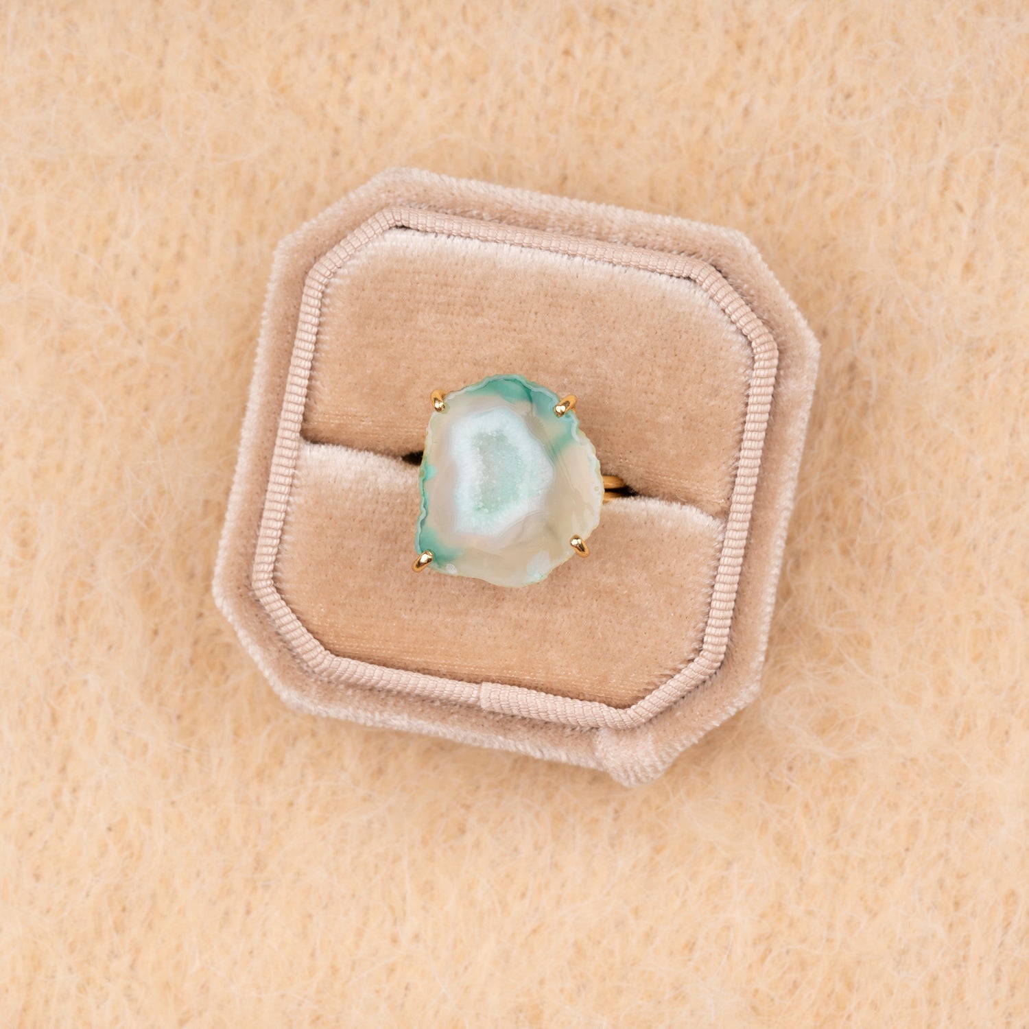 Iedere geode ring is one-of-a-kind door haar natuurlijke vorm en unieke patronen. Geen twee stenen zijn hetzelfde, waardoor je een sieraad draagt dat écht alleen van jou is. Omdat iedere steen uniek is, is er van elk sieraad maar één beschikbaar — uitverkocht is dus ook écht uitverkocht.