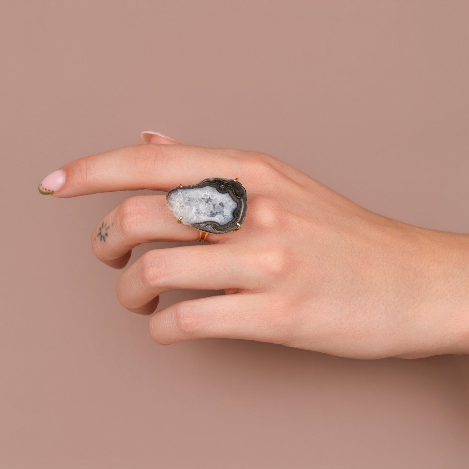 Iedere geode ring is one-of-a-kind door haar natuurlijke vorm en unieke patronen. Geen twee stenen zijn hetzelfde, waardoor je een sieraad draagt dat écht alleen van jou is. Omdat iedere steen uniek is, is er van elk sieraad maar één beschikbaar — uitverkocht is dus ook écht uitverkocht.