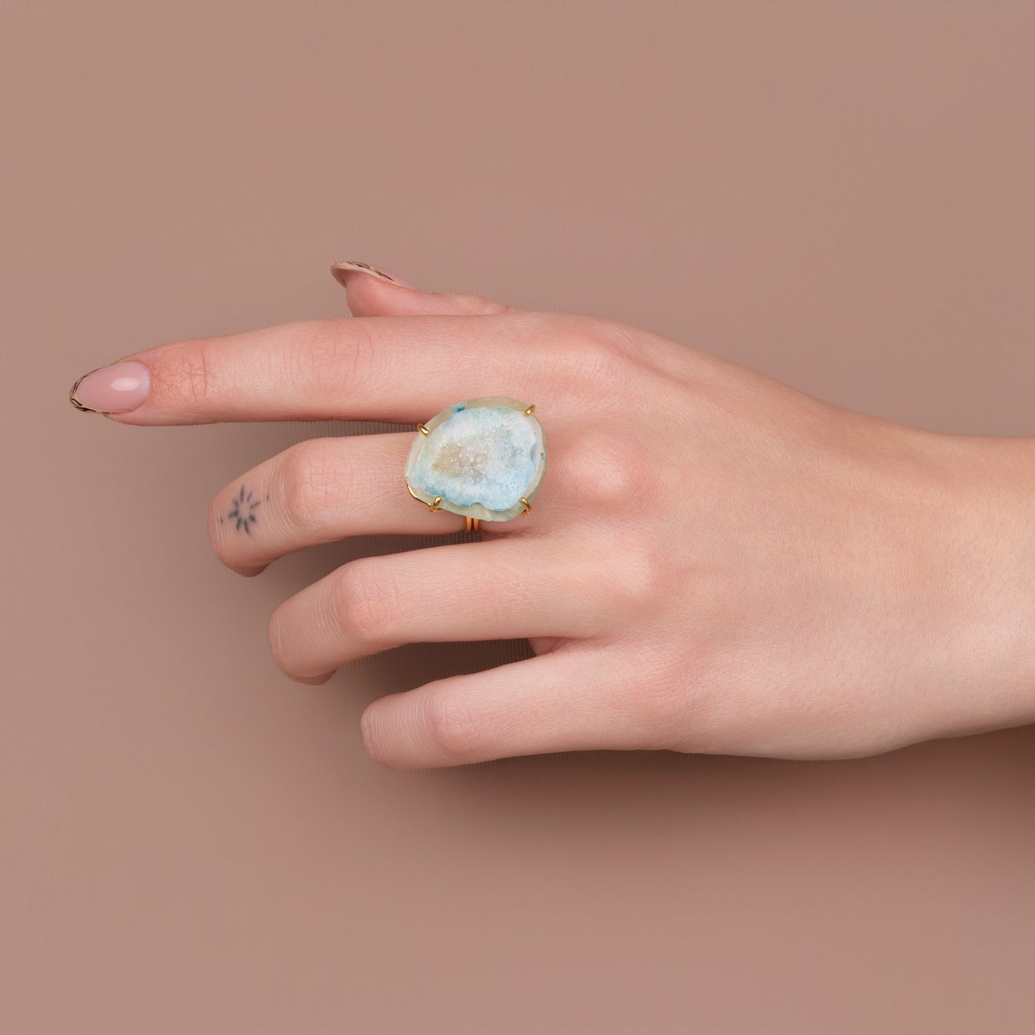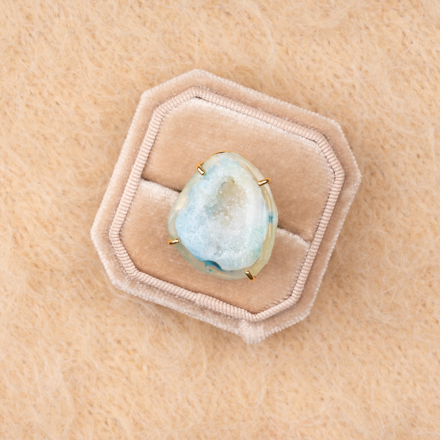 Iedere geode ring is one-of-a-kind door haar natuurlijke vorm en unieke patronen. Geen twee stenen zijn hetzelfde, waardoor je een sieraad draagt dat écht alleen van jou is. Omdat iedere steen uniek is, is er van elk sieraad maar één beschikbaar — uitverkocht is dus ook écht uitverkocht.