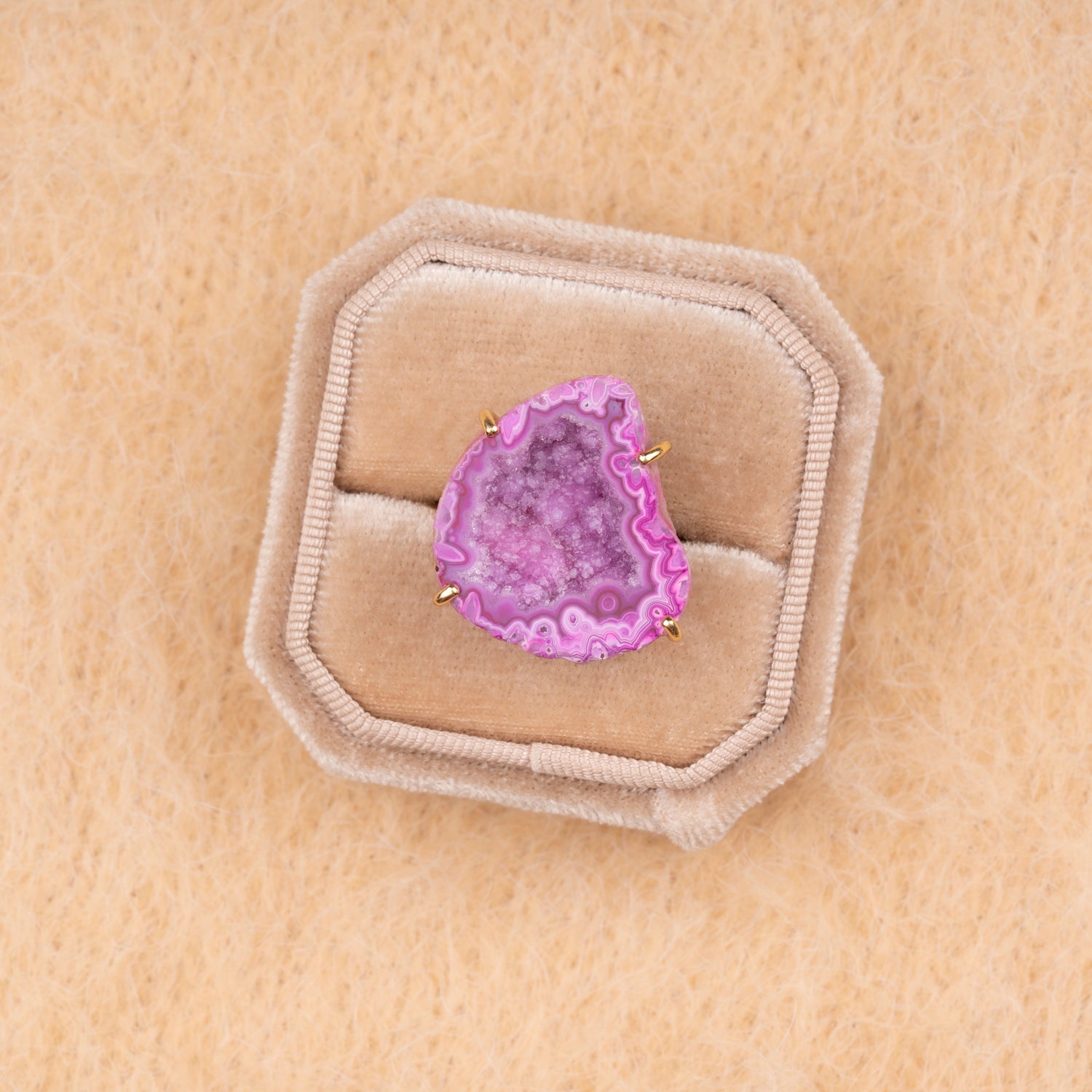 Iedere geode ring is one-of-a-kind door haar natuurlijke vorm en unieke patronen. Geen twee stenen zijn hetzelfde, waardoor je een sieraad draagt dat écht alleen van jou is. Omdat iedere steen uniek is, is er van elk sieraad maar één beschikbaar — uitverkocht is dus ook écht uitverkocht.