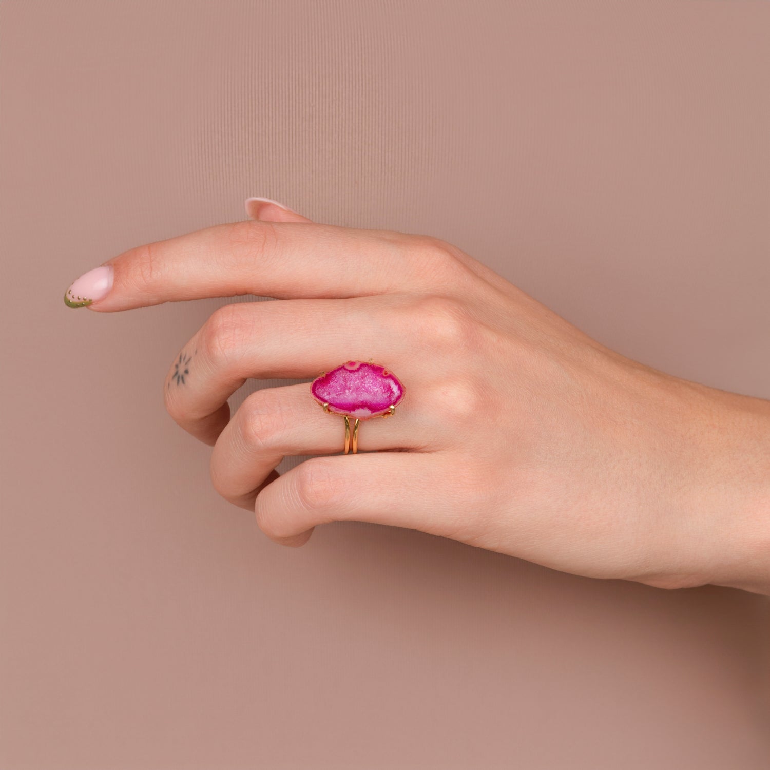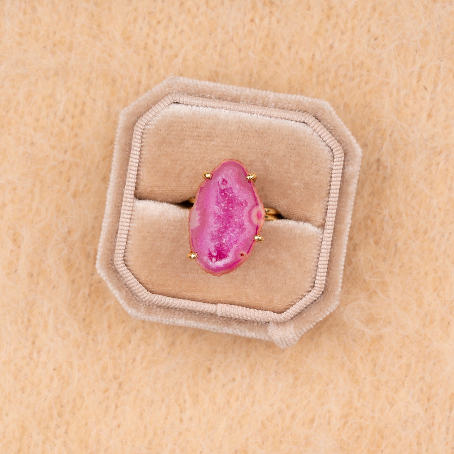 Iedere geode ring is one-of-a-kind door haar natuurlijke vorm en unieke patronen. Geen twee stenen zijn hetzelfde, waardoor je een sieraad draagt dat écht alleen van jou is. Omdat iedere steen uniek is, is er van elk sieraad maar één beschikbaar — uitverkocht is dus ook écht uitverkocht.
