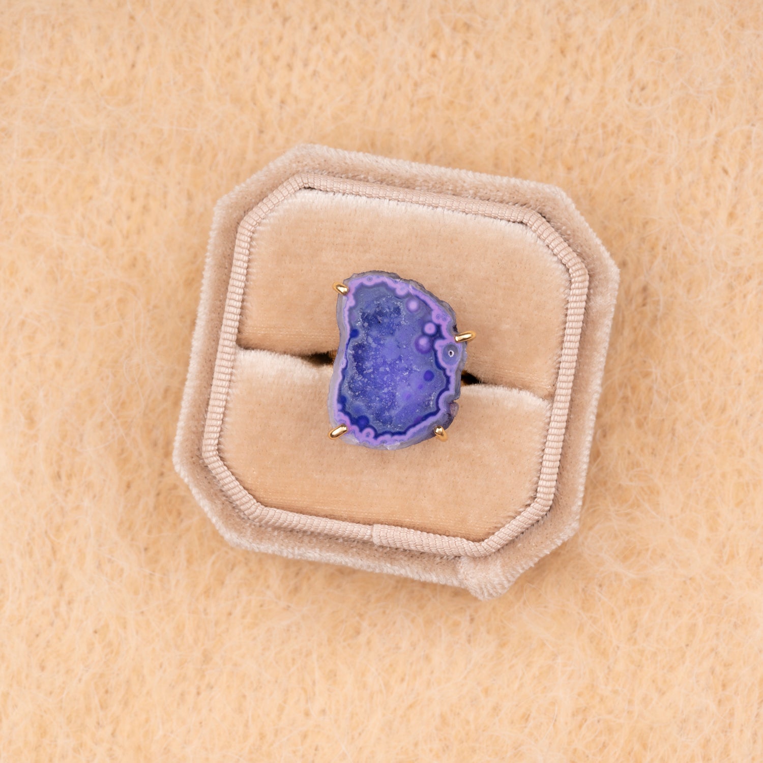 Iedere geode ring is one-of-a-kind door haar natuurlijke vorm en unieke patronen. Geen twee stenen zijn hetzelfde, waardoor je een sieraad draagt dat écht alleen van jou is. Omdat iedere steen uniek is, is er van elk sieraad maar één beschikbaar — uitverkocht is dus ook écht uitverkocht.