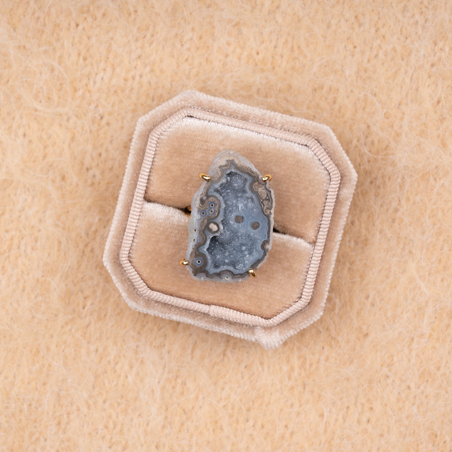 Iedere geode ring is one-of-a-kind door haar natuurlijke vorm en unieke patronen. Geen twee stenen zijn hetzelfde, waardoor je een sieraad draagt dat écht alleen van jou is. Omdat iedere steen uniek is, is er van elk sieraad maar één beschikbaar — uitverkocht is dus ook écht uitverkocht.