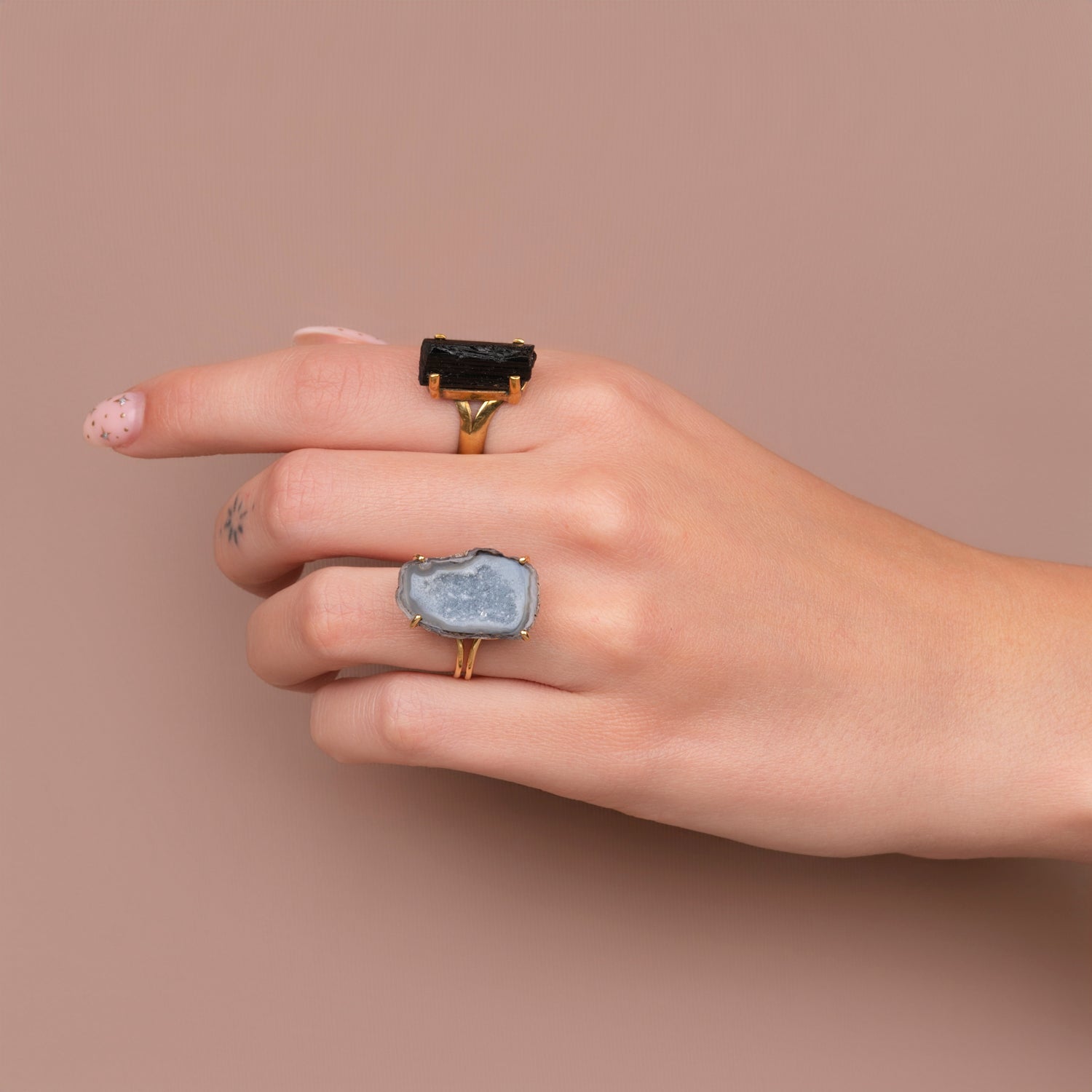Iedere geode ring is one-of-a-kind door haar natuurlijke vorm en unieke patronen. Geen twee stenen zijn hetzelfde, waardoor je een sieraad draagt dat écht alleen van jou is. Omdat iedere steen uniek is, is er van elk sieraad maar één beschikbaar — uitverkocht is dus ook écht uitverkocht.