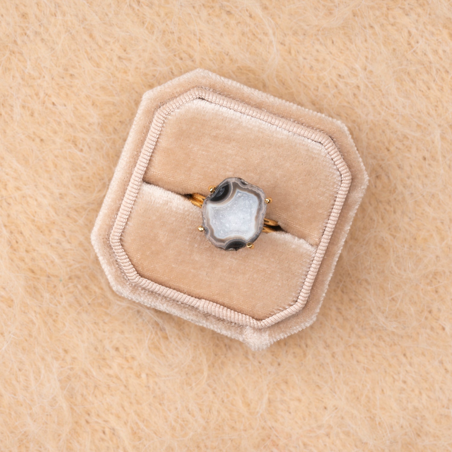 Iedere geode ring is one-of-a-kind door haar natuurlijke vorm en unieke patronen. Geen twee stenen zijn hetzelfde, waardoor je een sieraad draagt dat écht alleen van jou is. Omdat iedere steen uniek is, is er van elk sieraad maar één beschikbaar — uitverkocht is dus ook écht uitverkocht.