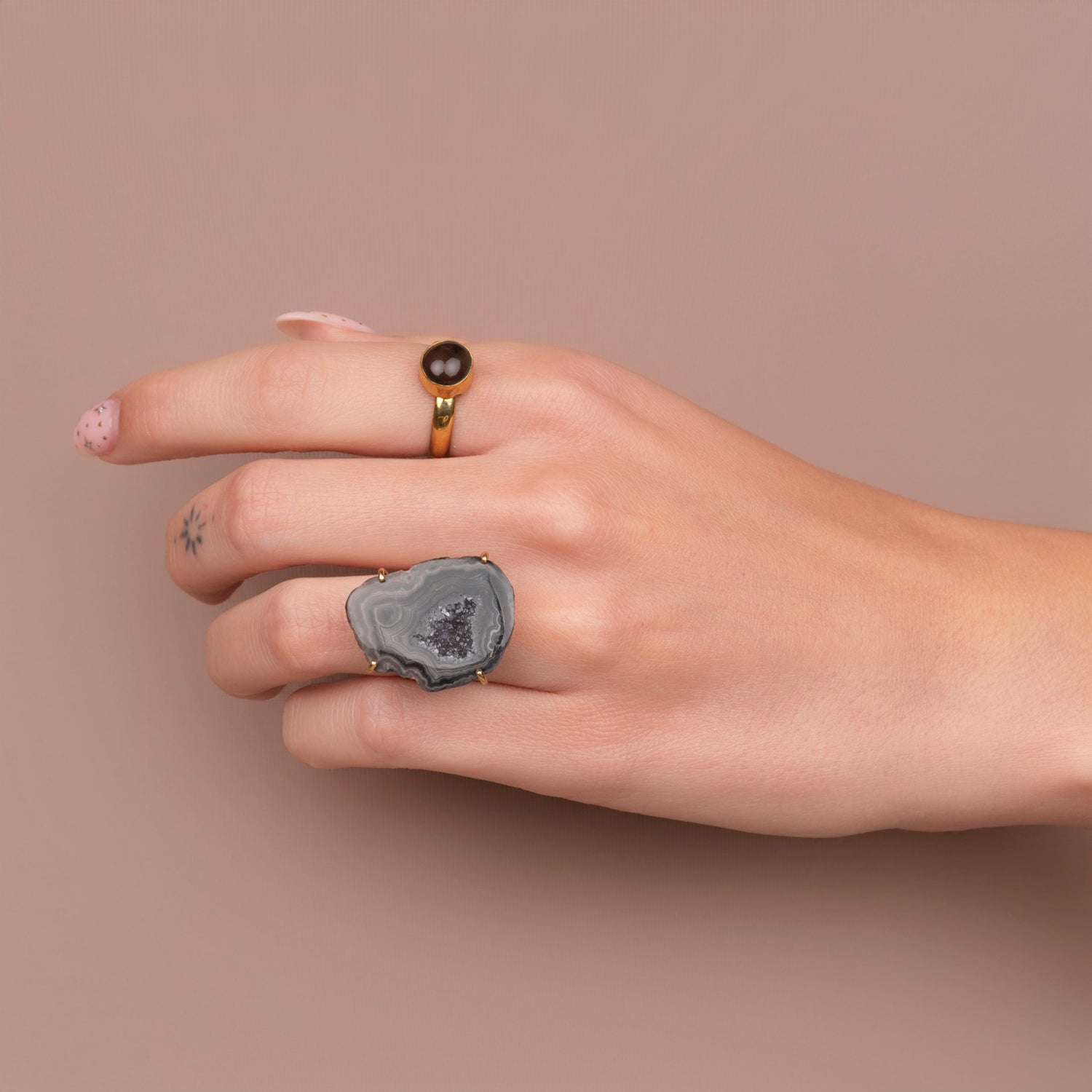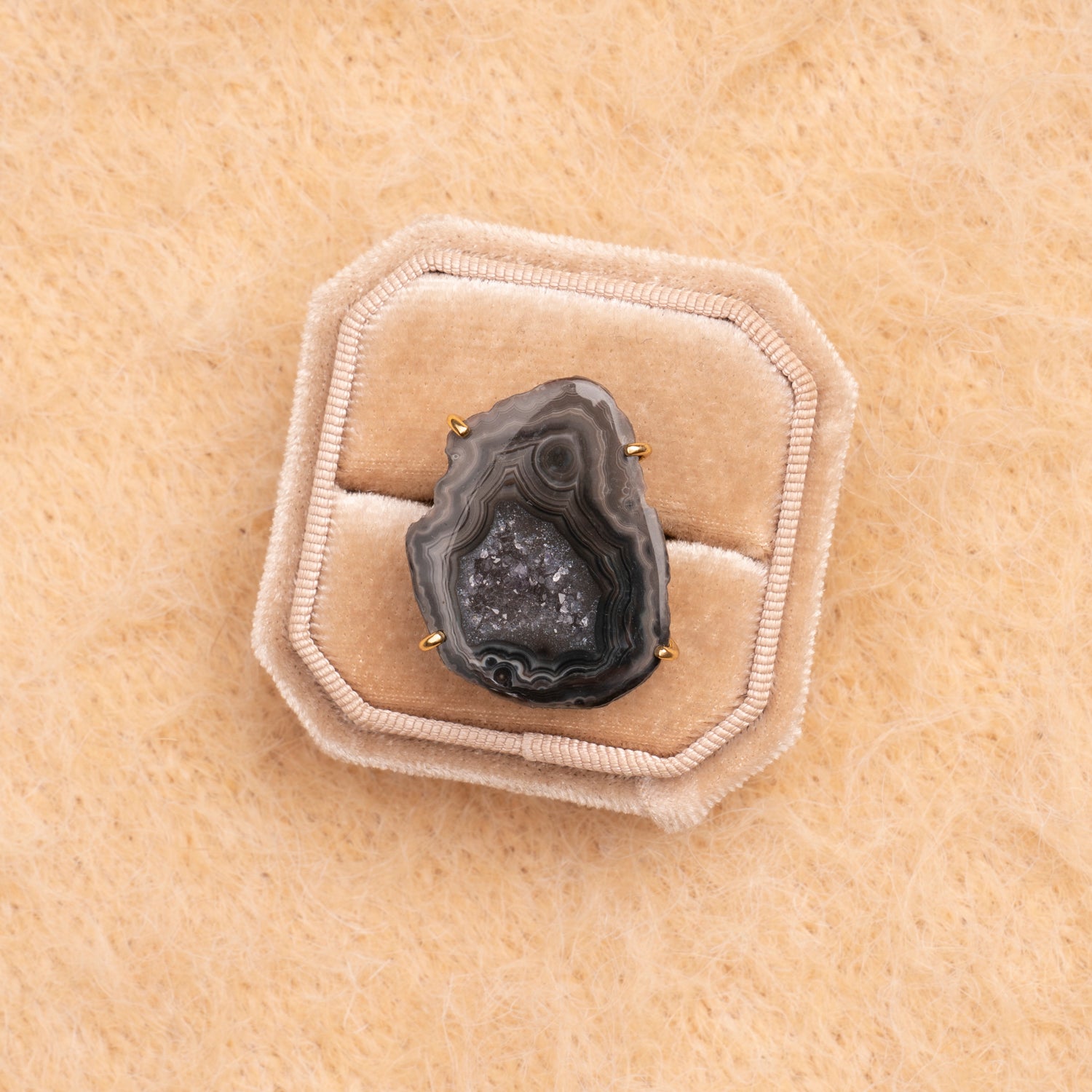 Iedere geode ring is one-of-a-kind door haar natuurlijke vorm en unieke patronen. Geen twee stenen zijn hetzelfde, waardoor je een sieraad draagt dat écht alleen van jou is. Omdat iedere steen uniek is, is er van elk sieraad maar één beschikbaar — uitverkocht is dus ook écht uitverkocht.