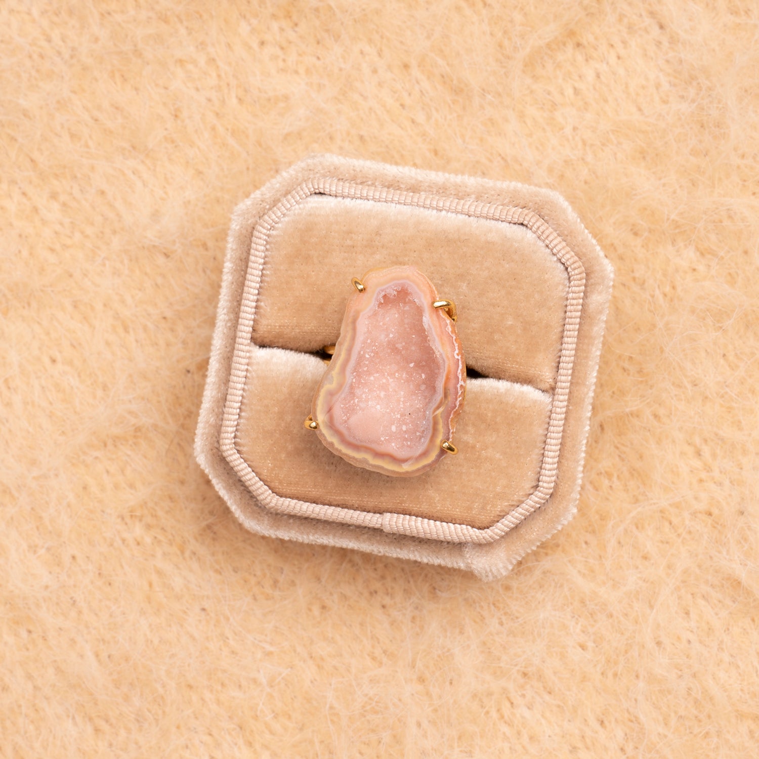 Iedere geode ring is one-of-a-kind door haar natuurlijke vorm en unieke patronen. Geen twee stenen zijn hetzelfde, waardoor je een sieraad draagt dat écht alleen van jou is. Omdat iedere steen uniek is, is er van elk sieraad maar één beschikbaar — uitverkocht is dus ook écht uitverkocht.