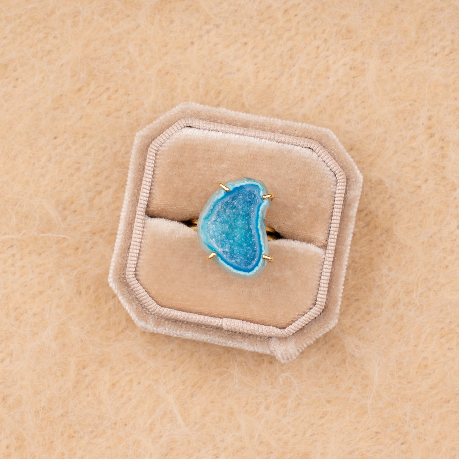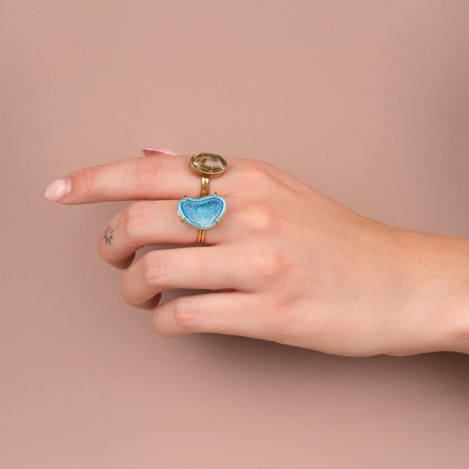 Iedere geode ring is one-of-a-kind door haar natuurlijke vorm en unieke patronen. Geen twee stenen zijn hetzelfde, waardoor je een sieraad draagt dat écht alleen van jou is. Omdat iedere steen uniek is, is er van elk sieraad maar één beschikbaar — uitverkocht is dus ook écht uitverkocht.
