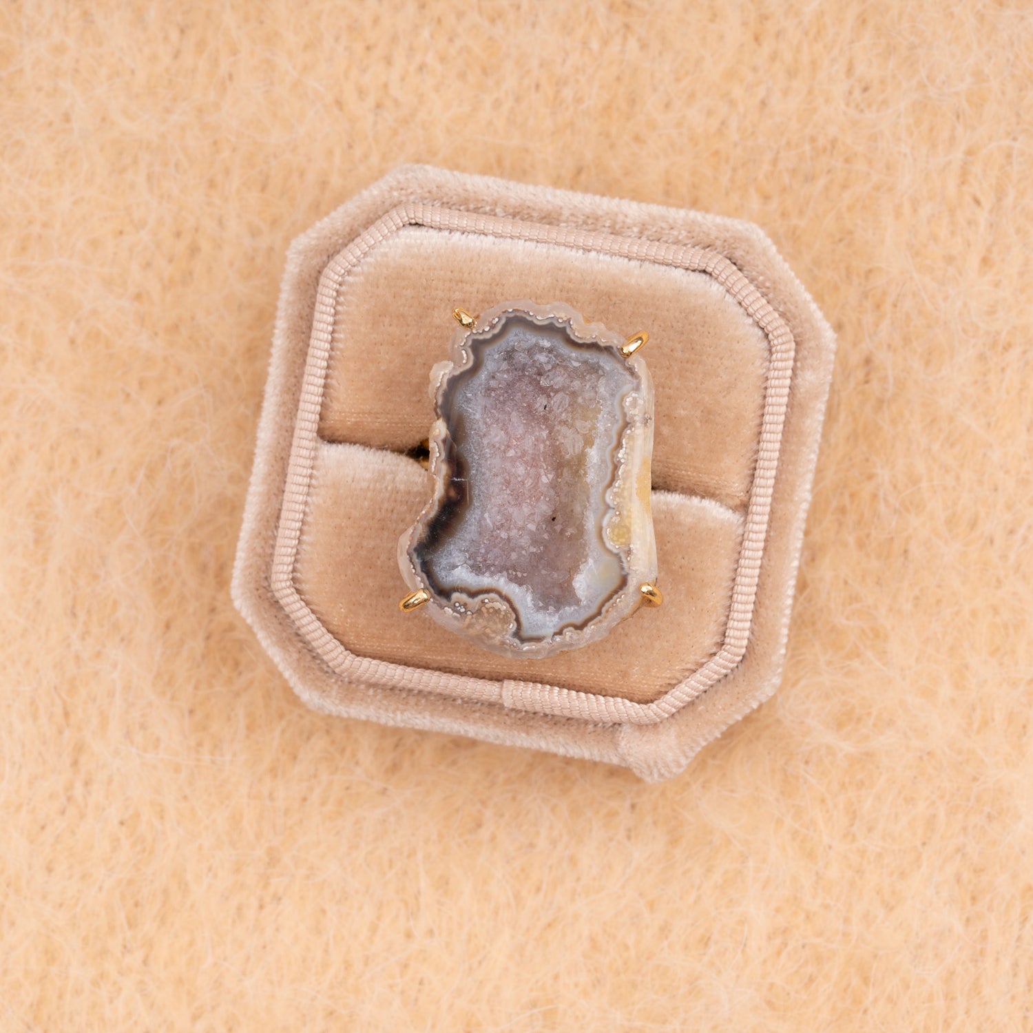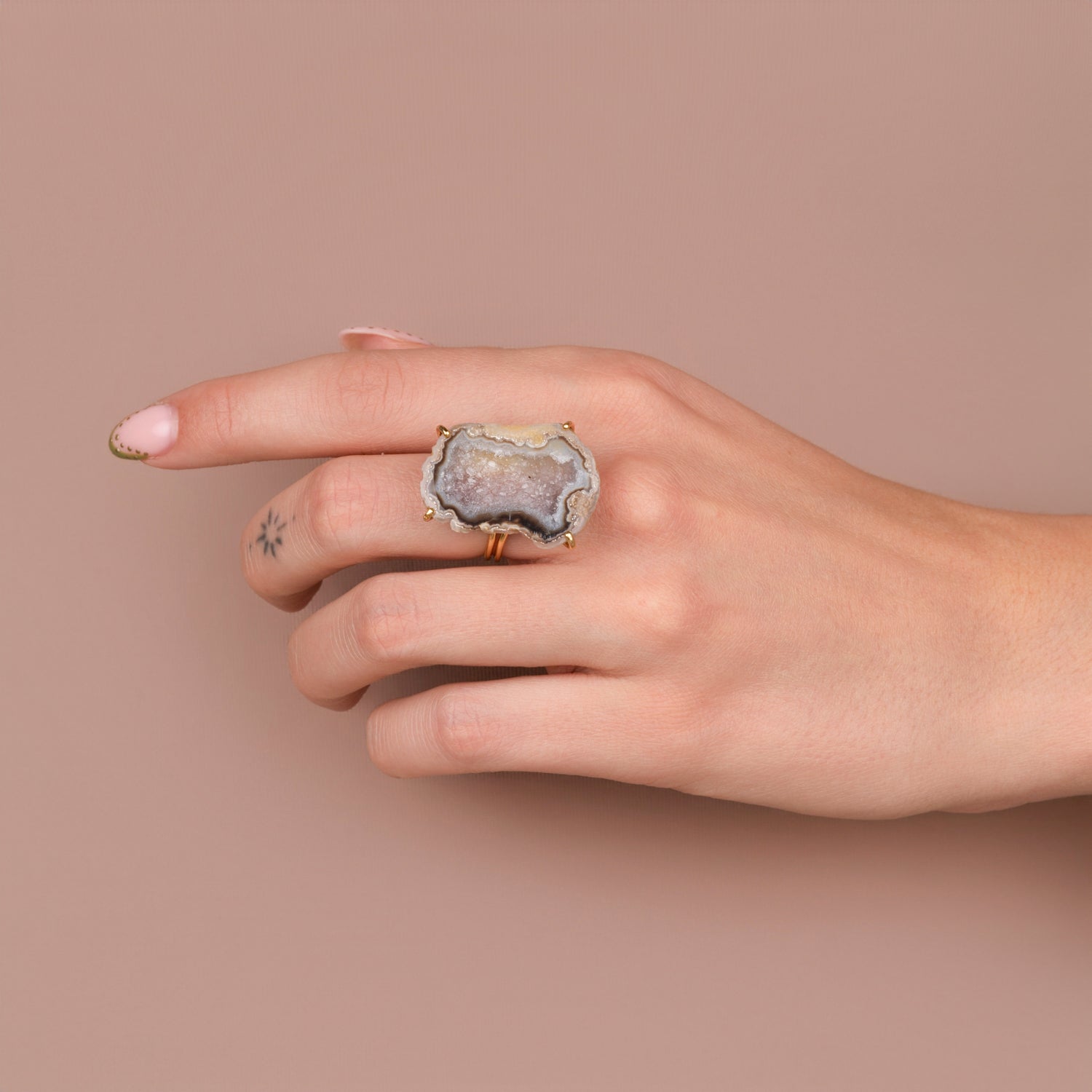 Iedere geode ring is one-of-a-kind door haar natuurlijke vorm en unieke patronen. Geen twee stenen zijn hetzelfde, waardoor je een sieraad draagt dat écht alleen van jou is. Omdat iedere steen uniek is, is er van elk sieraad maar één beschikbaar — uitverkocht is dus ook écht uitverkocht.