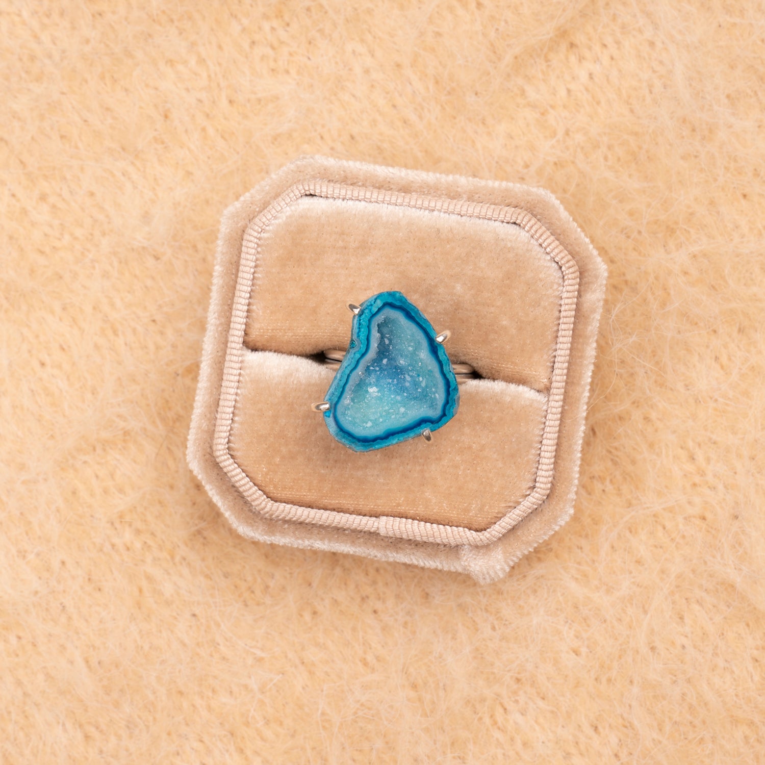 Iedere geode ring is one-of-a-kind door haar natuurlijke vorm en unieke patronen. Geen twee stenen zijn hetzelfde, waardoor je een sieraad draagt dat écht alleen van jou is. Omdat iedere steen uniek is, is er van elk sieraad maar één beschikbaar — uitverkocht is dus ook écht uitverkocht.