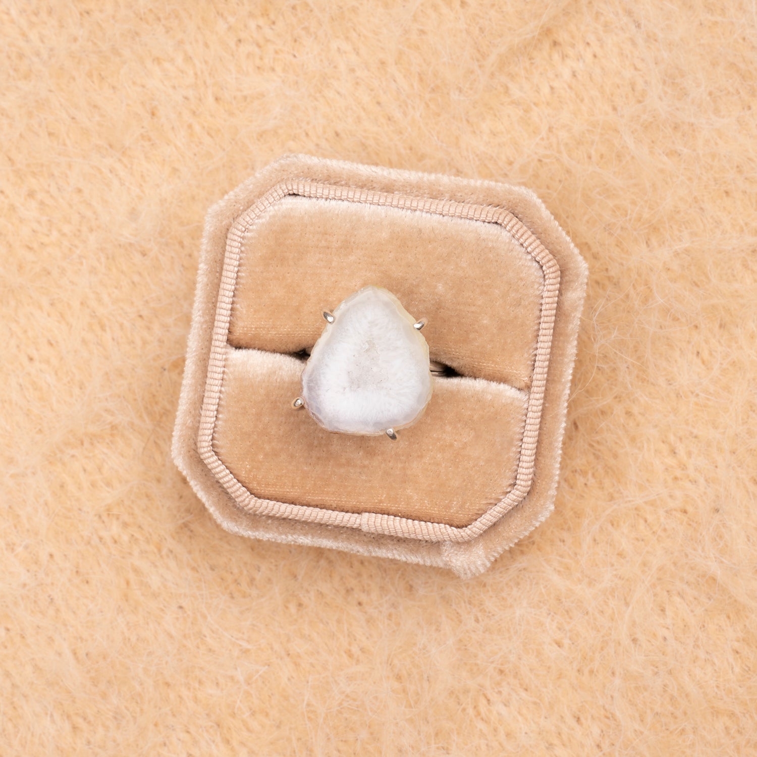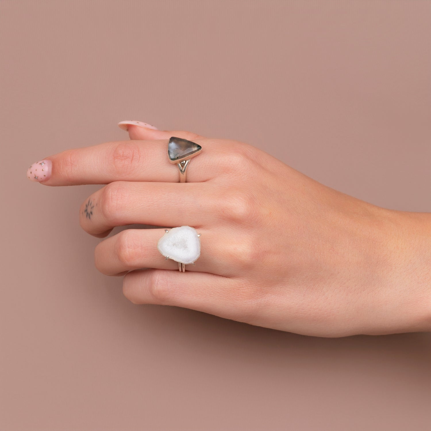 Iedere geode ring is one-of-a-kind door haar natuurlijke vorm en unieke patronen. Geen twee stenen zijn hetzelfde, waardoor je een sieraad draagt dat écht alleen van jou is. Omdat iedere steen uniek is, is er van elk sieraad maar één beschikbaar — uitverkocht is dus ook écht uitverkocht.