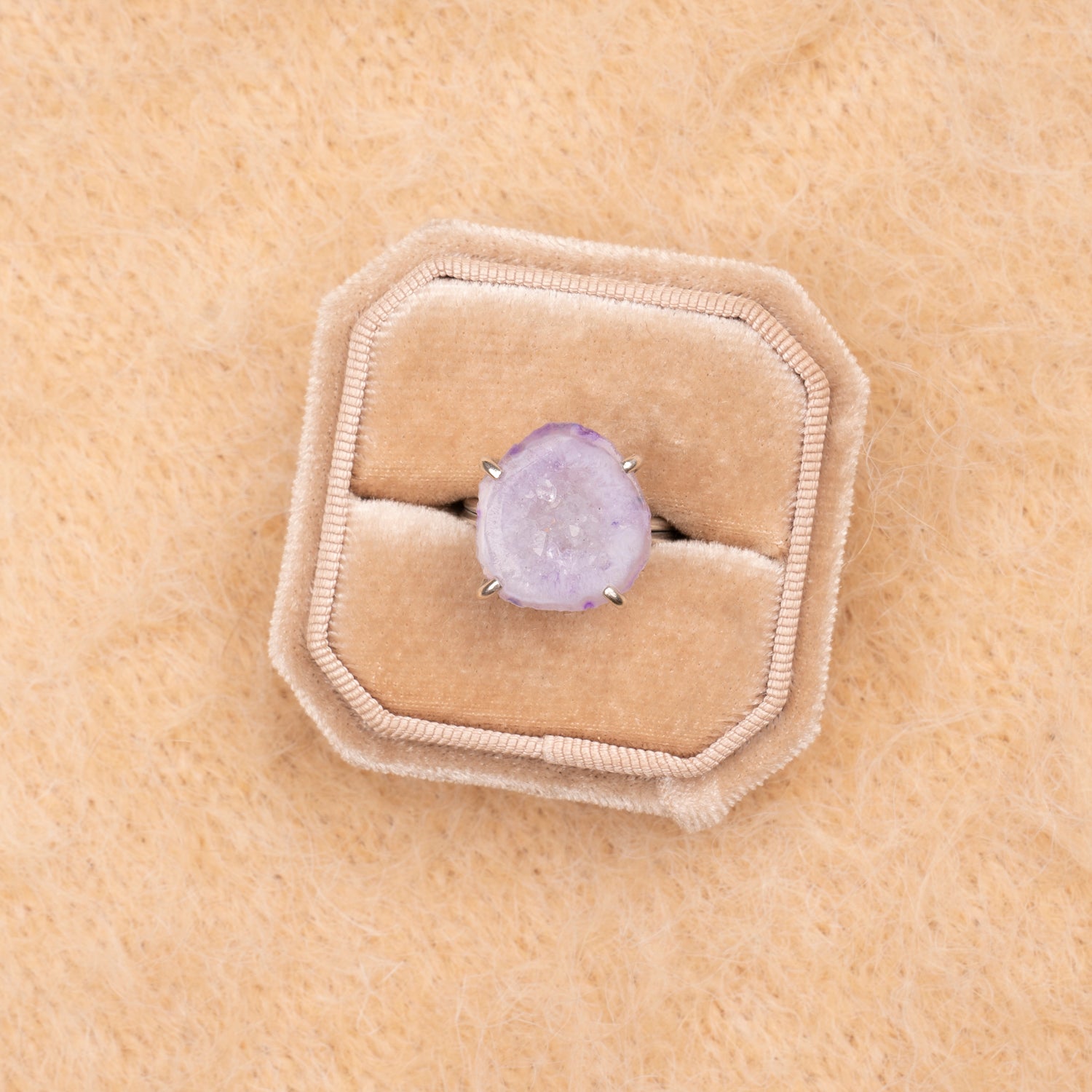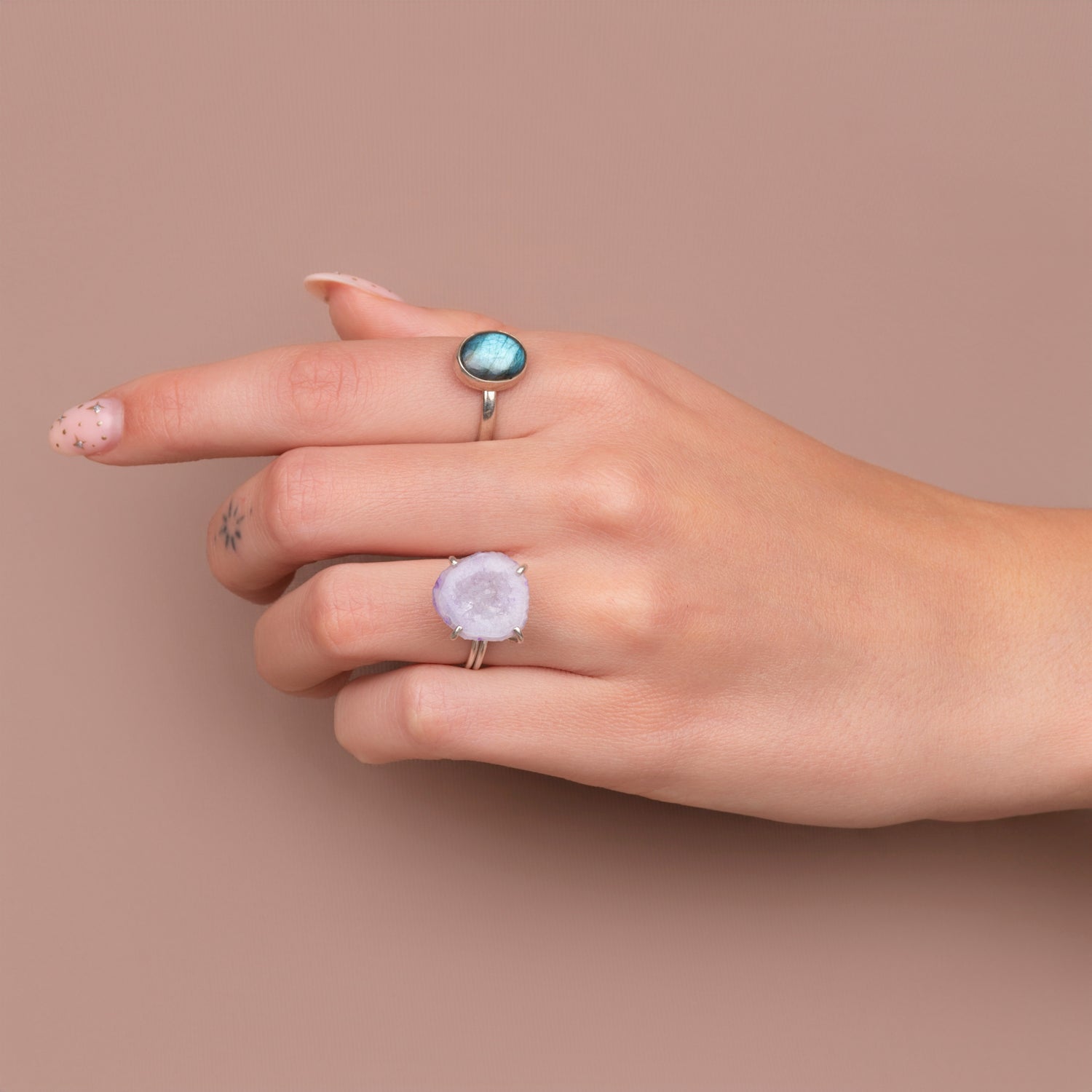 Iedere geode ring is one-of-a-kind door haar natuurlijke vorm en unieke patronen. Geen twee stenen zijn hetzelfde, waardoor je een sieraad draagt dat écht alleen van jou is. Omdat iedere steen uniek is, is er van elk sieraad maar één beschikbaar — uitverkocht is dus ook écht uitverkocht.