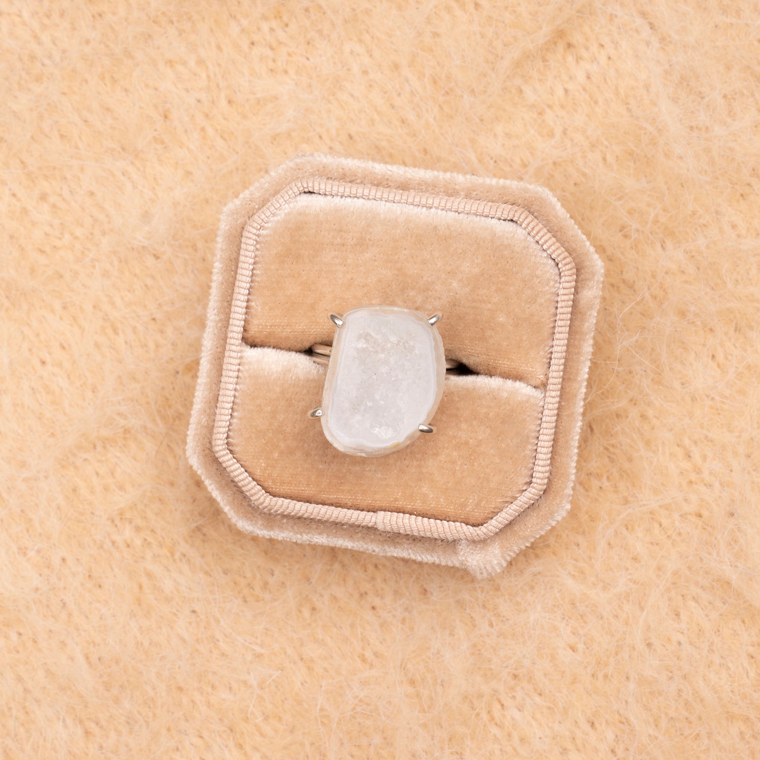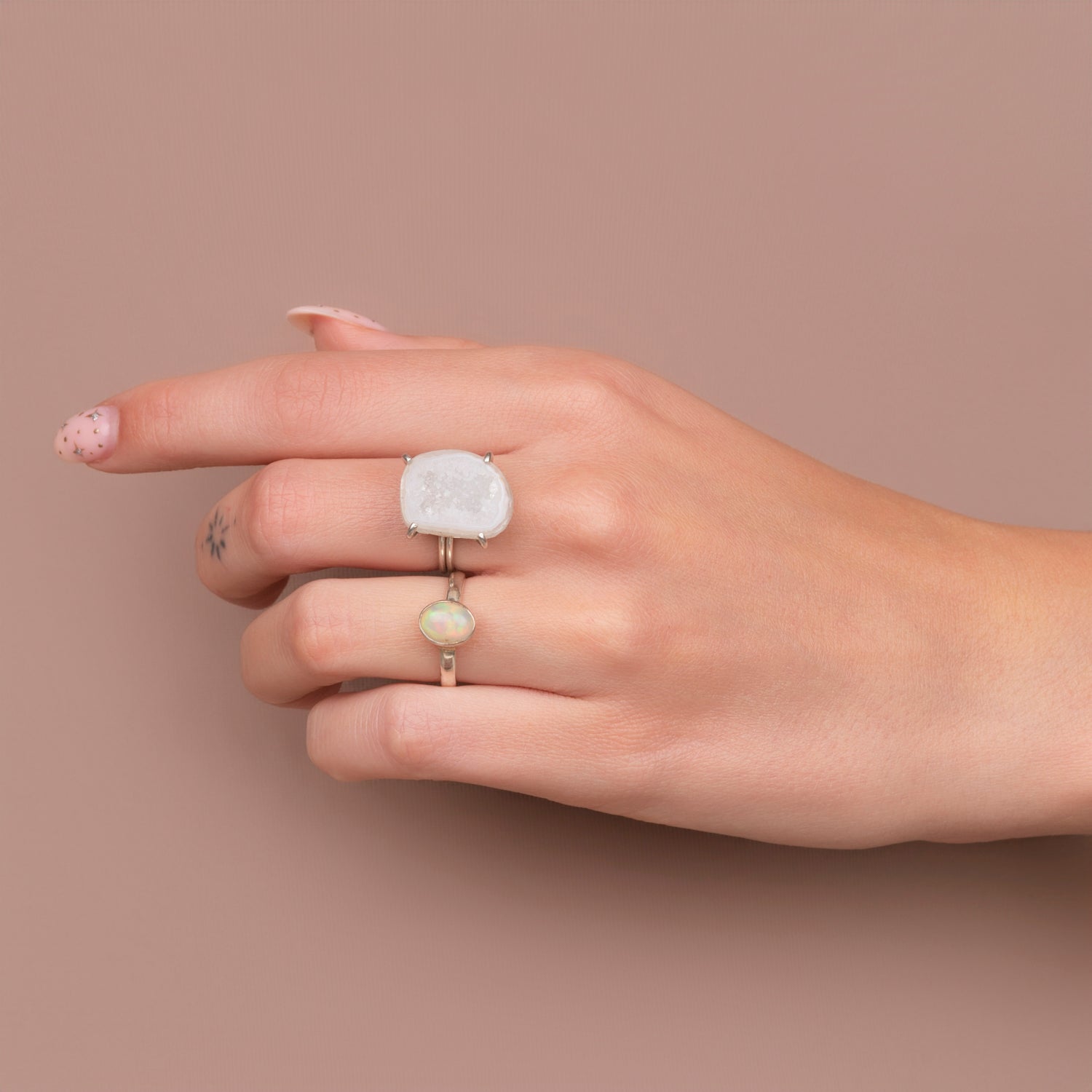 Iedere geode ring is one-of-a-kind door haar natuurlijke vorm en unieke patronen. Geen twee stenen zijn hetzelfde, waardoor je een sieraad draagt dat écht alleen van jou is. Omdat iedere steen uniek is, is er van elk sieraad maar één beschikbaar — uitverkocht is dus ook écht uitverkocht.