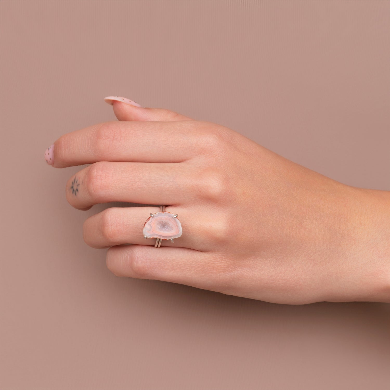 Iedere geode ring is one-of-a-kind door haar natuurlijke vorm en unieke patronen. Geen twee stenen zijn hetzelfde, waardoor je een sieraad draagt dat écht alleen van jou is. Omdat iedere steen uniek is, is er van elk sieraad maar één beschikbaar — uitverkocht is dus ook écht uitverkocht.