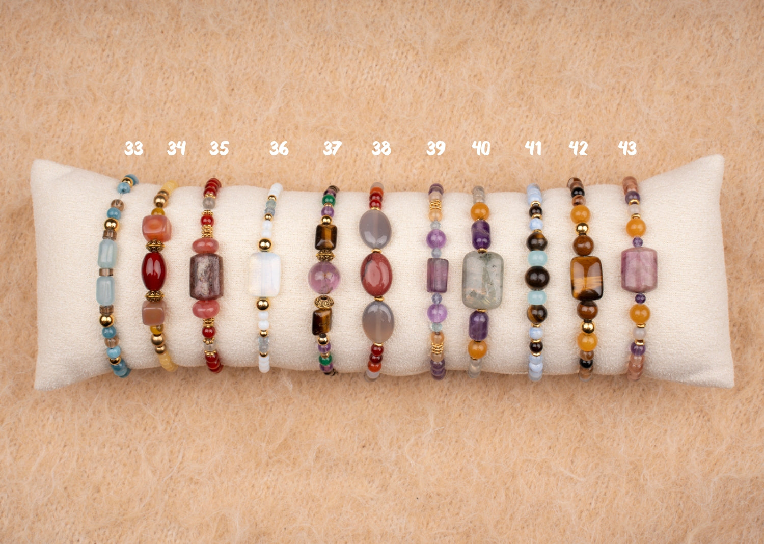Elke unieke armband is met liefde met de hand samengesteld — een harmonieuze mix van prachtige stenen, gekozen om hun kleur, energie en karakter. De gouden kralen zijn gemaakt van roestvrij staal, zodat je armband mooi blijft tijdens het dragen. Van iedere armband is er maar één beschikbaar, zo draag je altijd een sieraad dat echt alleen van jou is.