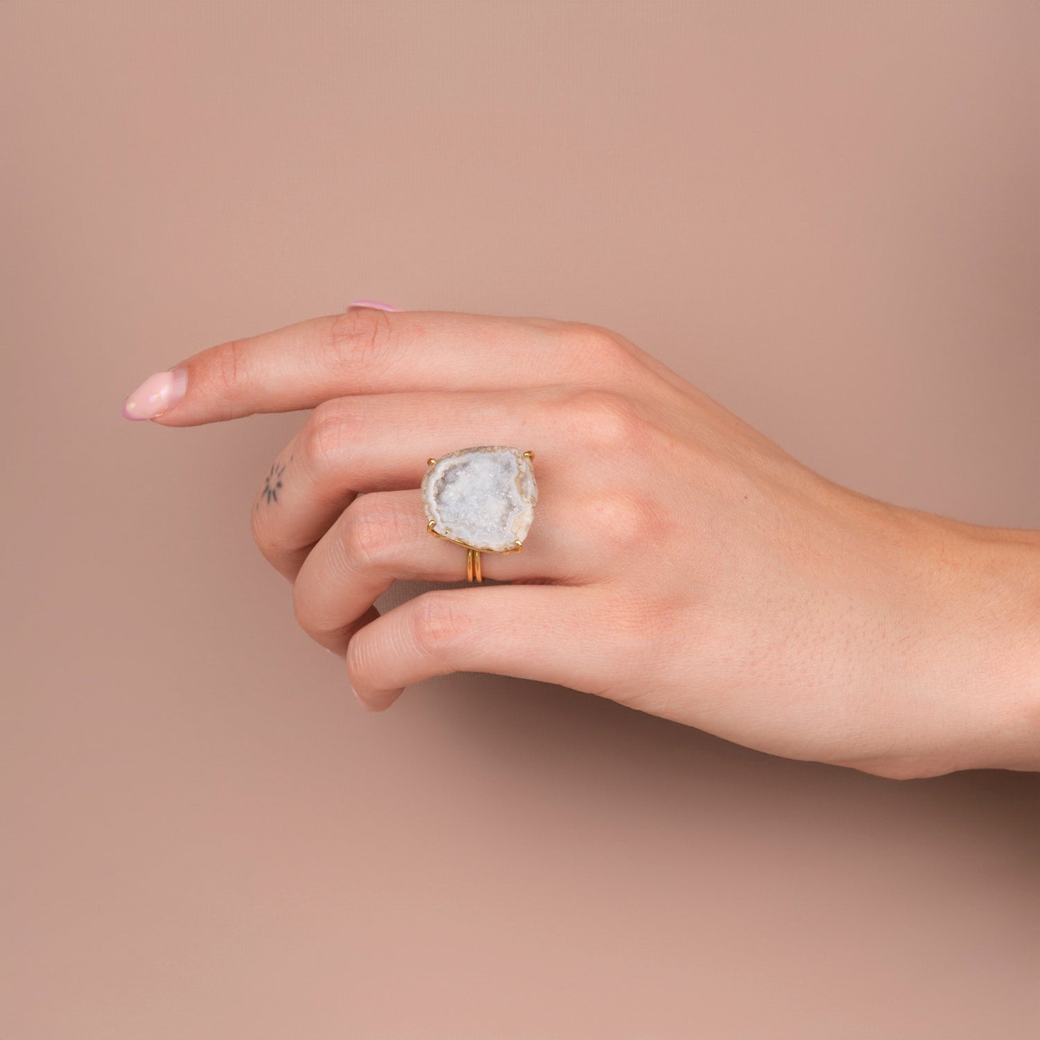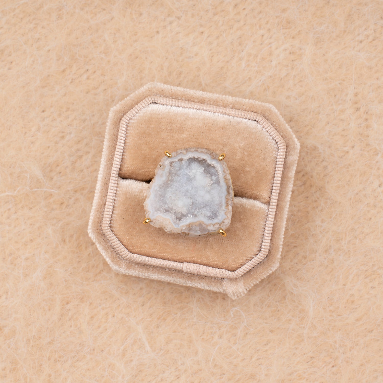 Iedere geode ring is one-of-a-kind door haar natuurlijke vorm en unieke patronen. Geen twee stenen zijn hetzelfde, waardoor je een sieraad draagt dat écht alleen van jou is. Omdat iedere steen uniek is, is er van elk sieraad maar één beschikbaar — uitverkocht is dus ook écht uitverkocht.