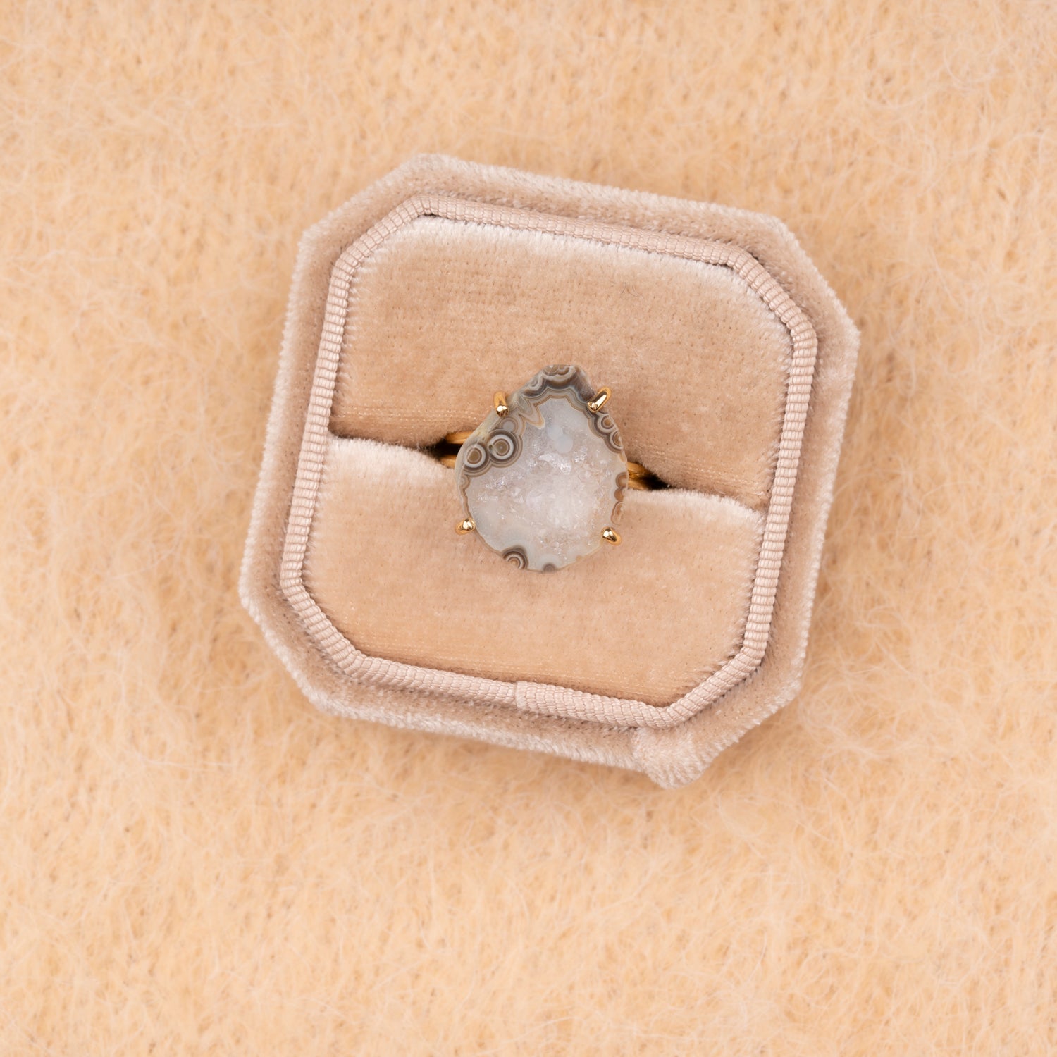 Iedere geode ring is one-of-a-kind door haar natuurlijke vorm en unieke patronen. Geen twee stenen zijn hetzelfde, waardoor je een sieraad draagt dat écht alleen van jou is. Omdat iedere steen uniek is, is er van elk sieraad maar één beschikbaar — uitverkocht is dus ook écht uitverkocht.